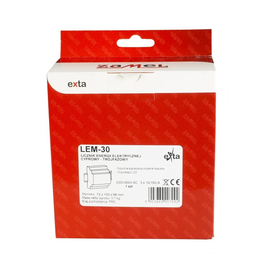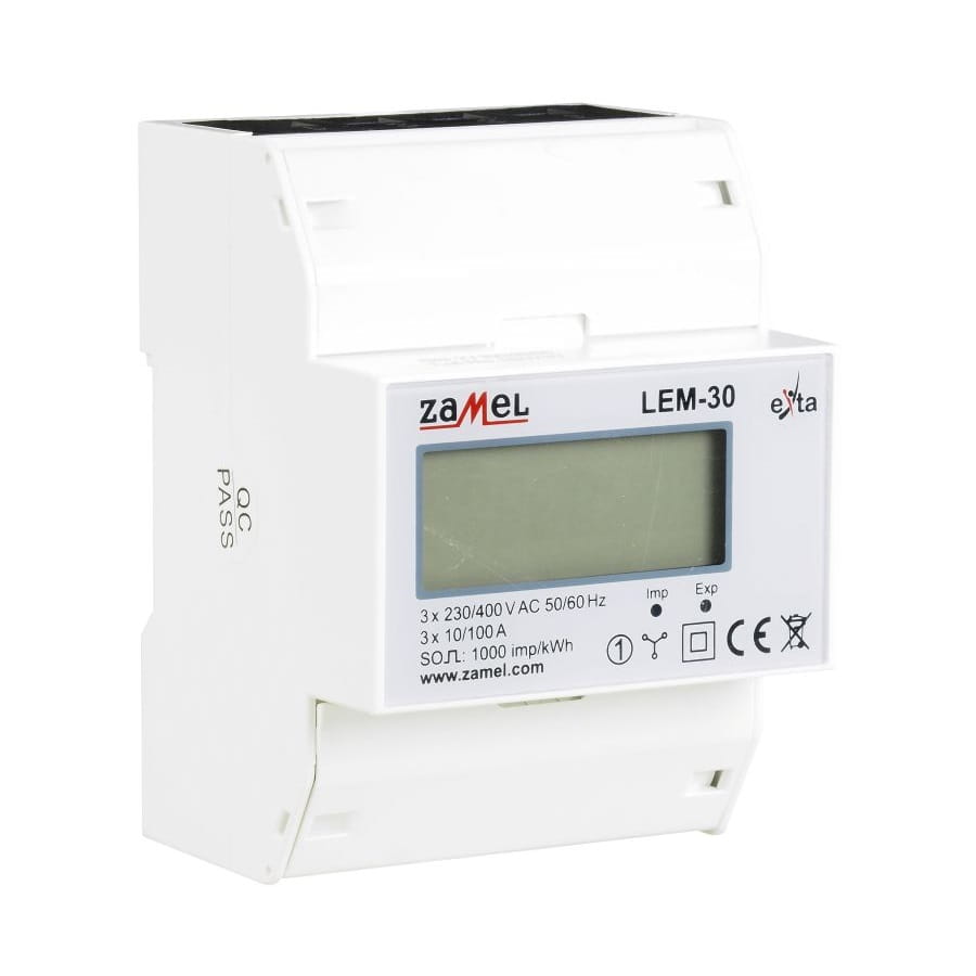 3-Phasen-Stromzähler 100A LCD LEM-30 ZAMEL ist ein Gerät zur Überwachung des Energieverbrauchs in dreiphasigen Netzen, ideal für gewerbliche und industrielle Anwendungen.
