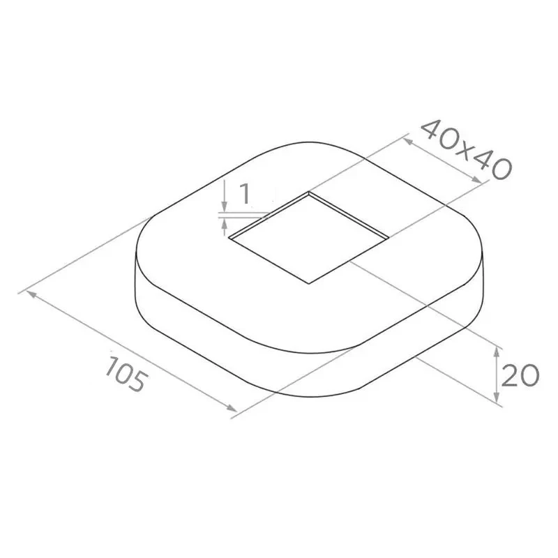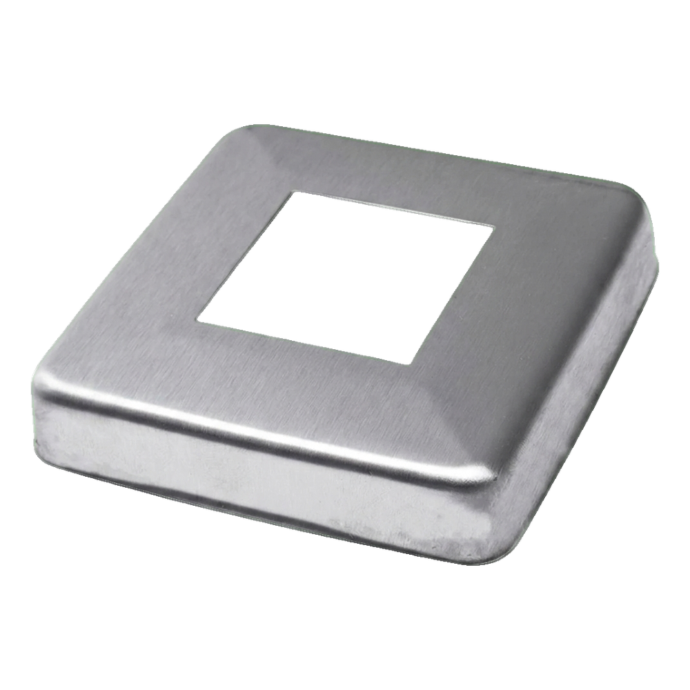 Abdeckrosette 105×105 mm ist ein quadratisches Abschlusselement zur Abdeckung von Montageöffnungen um 40×40 mm Profile in Geländern und Edelstahlkonstruktionen. Durch die präzise Anpassung an das Quadratprofil verdeckt es effektiv die Durchgangsstellen des Pfosten durch das tragende Element und verleiht dem Geländer ein professionelles, sauberes Aussehen.