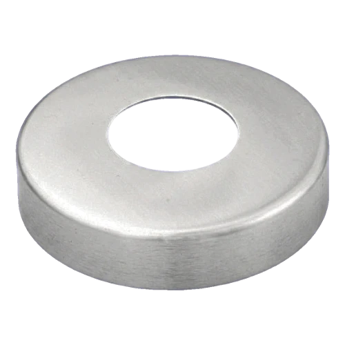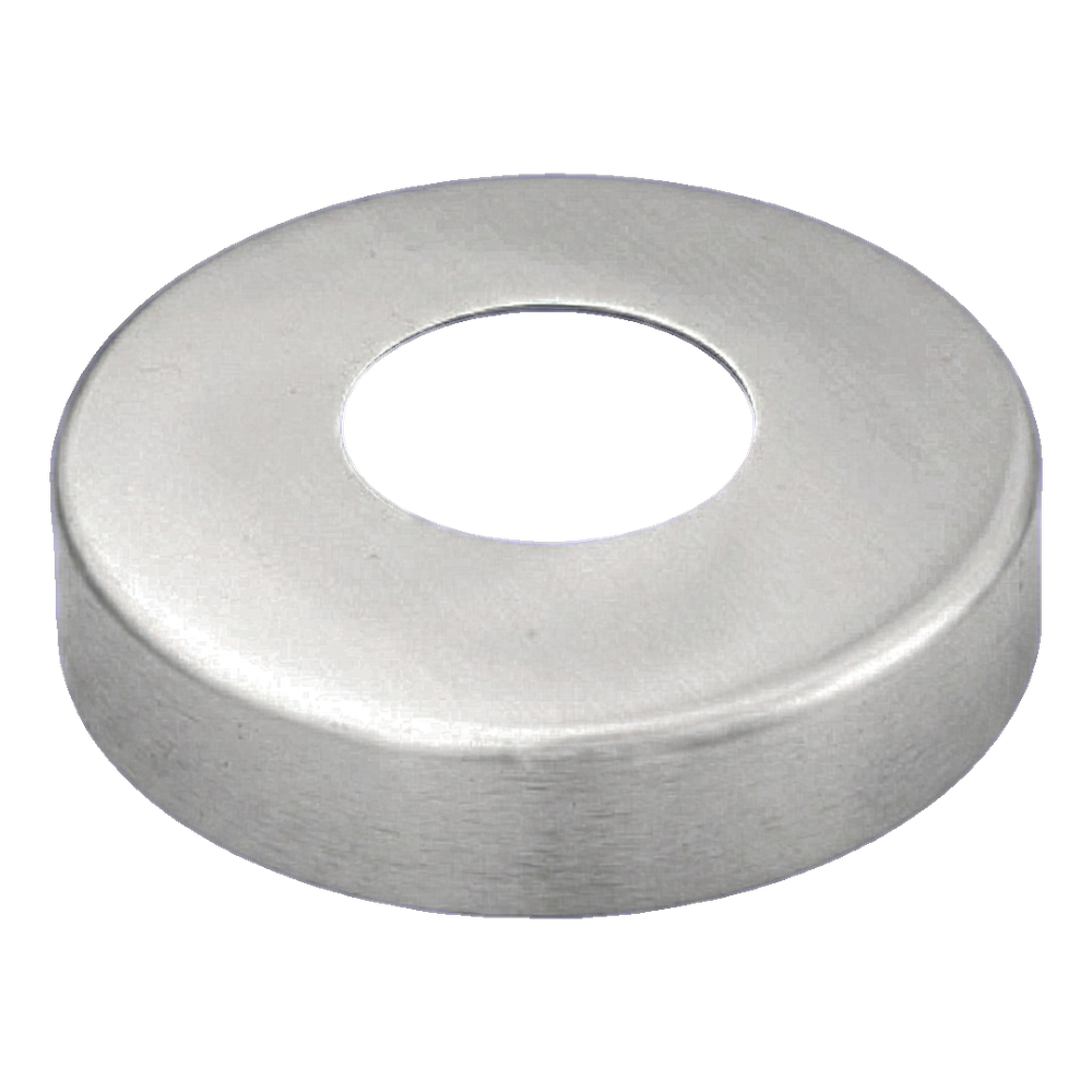 Abdeckrosette (Abdeckblende) aus Edelstahl AISI 304 zur ästhetischen Abdeckung von Montagelöchern rund um Rohre mit Durchmesser 42,4 mm bei Geländern und Edelstahlkonstruktionen. Die satinierte Oberflächenbehandlung sorgt für ein elegantes, dezentes Erscheinungsbild und verdeckt gleichzeitig effektiv Unvollkommenheiten an der Durchtrittsstelle des Pfostens durch das tragende Element.