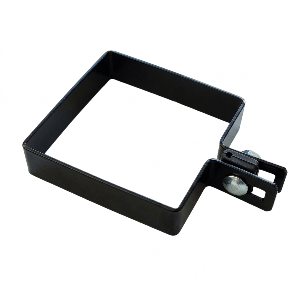 Der Bügel ist aus 2 mm dickem Stahlblech mit pulverbeschichteter Oberfläche in RAL 9005 (schwarz) gefertigt, was hohe Korrosionsbeständigkeit, ästhetisches Aussehen und langjährige Haltbarkeit unter wechselnden Witterungsbedingungen gewährleistet. Die solide Konstruktion garantiert eine stabile Befestigung des Zaunpaneels am Pfosten und eliminiert das Risiko einer Lockerung der Befestigung durch Wind oder Vibrationen.
