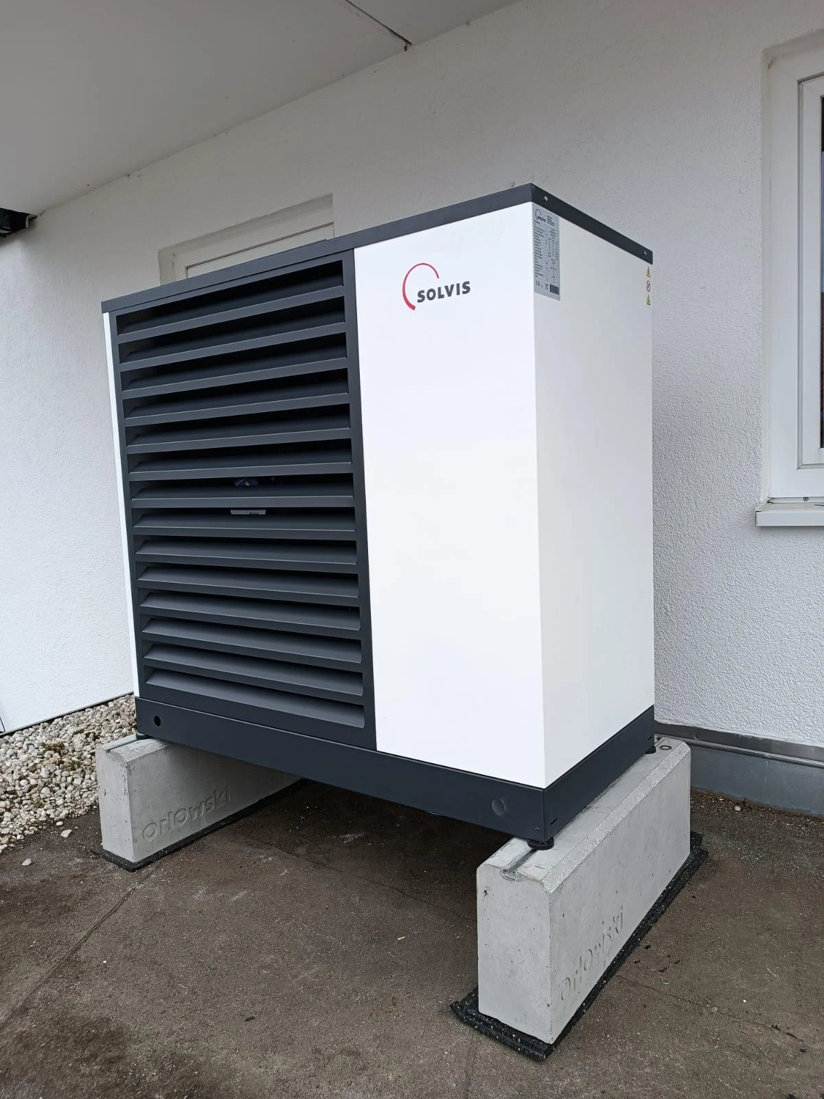 Abmessungen und technische Parameter: Das Fundament mit den Maßen 600 × 150 × 300 mm (Länge × Breite × Höhe) wurde unter Berücksichtigung der Oberflächenneigung entwickelt – 5% längs und 2% quer – was die Ableitung von Wasser und Kondensat unter der Außeneinheit gewährleistet.