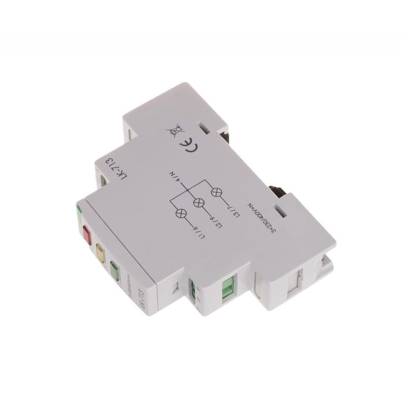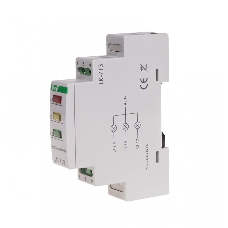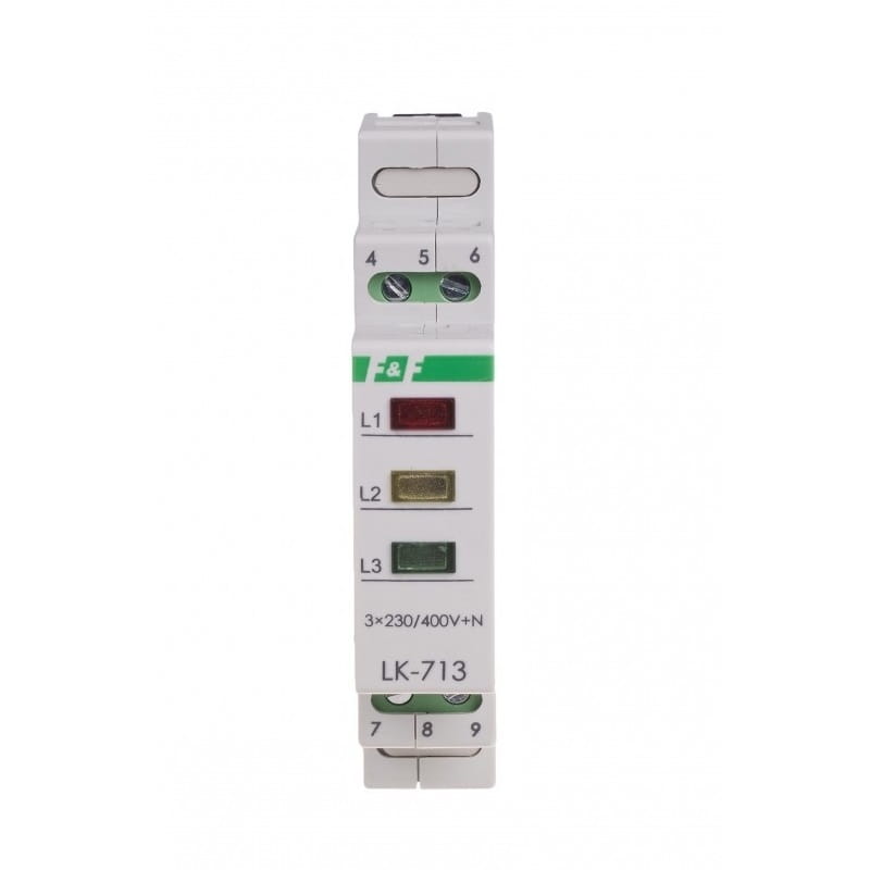 Blinkleuchte 3×230V+N 3xLED grün LK-713 G F&F FILIPOWSKI ist so konzipiert, dass er das Vorhandensein von Spannung auf jeder der drei Phasen eines Dreiphasennetzes optisch signalisiert. Wenn auf einer Phase Spannung anliegt, leuchtet die entsprechende grüne LED auf. Die gesamte Einheit wird mit 3×230 V+N versorgt und enthält drei grüne LEDs.