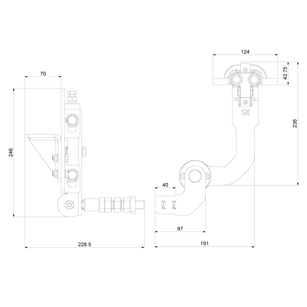 - Abstand der Scharnierachse von der Basis: 43,75 mm