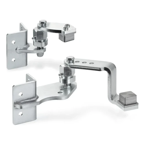 Das Set ist für die Montage an Stahl- und Betonpfosten bestimmt. Die Konstruktion aus verzinktem Stahl gewährleistet Korrosionsbeständigkeit und langfristige Nutzung unter Außenbedingungen. Durch den einstellbaren Abstand der Drehachse (35–55 mm) passt der Installateur die Montage flexibel an die örtlichen Gegebenheiten an.