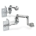 Comunello – komplettes linkes Scharniere-Set zum Schweißen bestimmt für die Montage von Flügeltoren an ansteigenden Hängen. Das Set ermöglicht eine präzise Regulierung der Flügelposition durch exzentrische Schraube, die die Flügelhalterung mit dem Gelenk verbindet — die Drehung des Gelenks ermöglicht es, den Flügel perfekt waagerecht zu positionieren und ihn mit dem Pfosten auszurichten, auch wenn das Gelände geneigt ist.