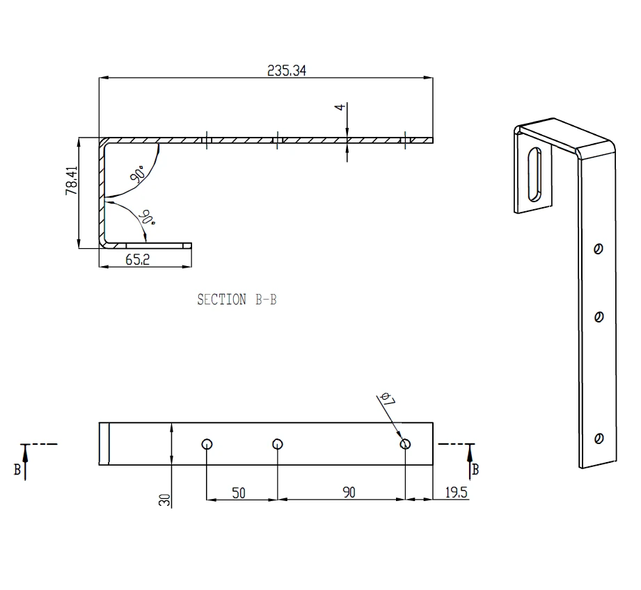 - Die genauen Abmessungen des Hakens sind in den obigen Grafiken dargestellt.