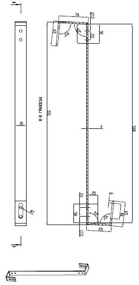 Er ist aus Edelstahl gefertigt und garantiert Schutz vor ungünstigen Witterungseinflüssen. Im oberen Teil des Elements befindet sich eine M7-Bohrung für eine M6-Schraube, die das Anschrauben der Halterung an die Dachlatte und die Erhöhung der Konstruktionssteifigkeit ermöglicht. Die Langlochbohrung im Stab erlaubt die Korrektur der Ausrichtung der Montageschienen.