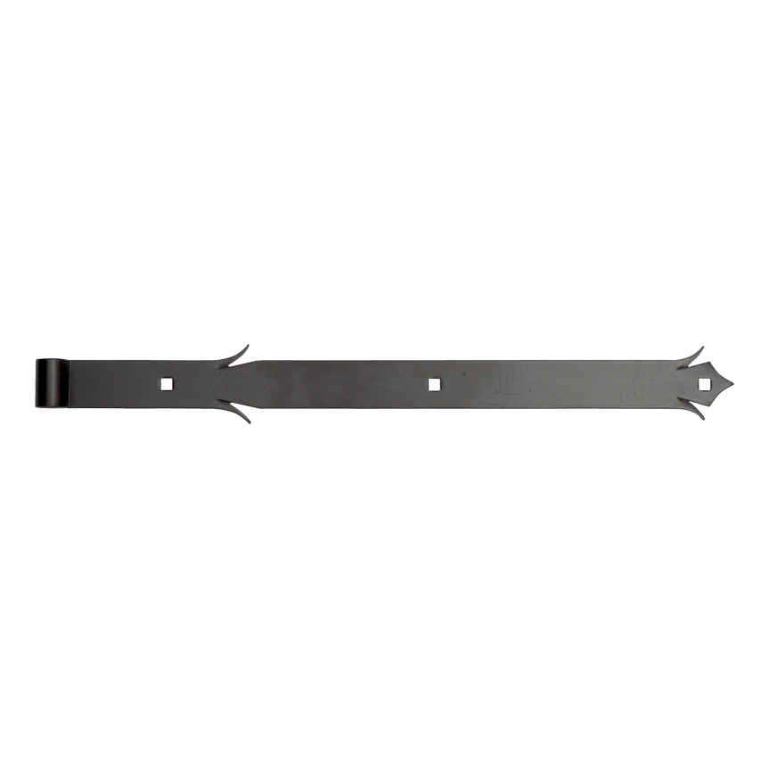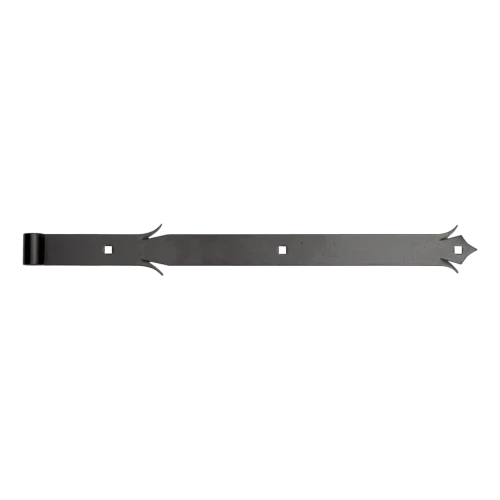 Der dekorative Bandscharnier 500/35 ist ein robuster Scharnierarm für die Montage an Flügeltoren. Dank des dekorativen Abschlusses in Form einer ziervollen Spitze und stilvoller Ausschnitte am Flachstahl verbindet das Element Funktionalität mit Ästhetik — perfekt geeignet sowohl für klassische Grundstückszäune als auch für Tore mit rustikalem oder herrschaftlichem Charakter.
