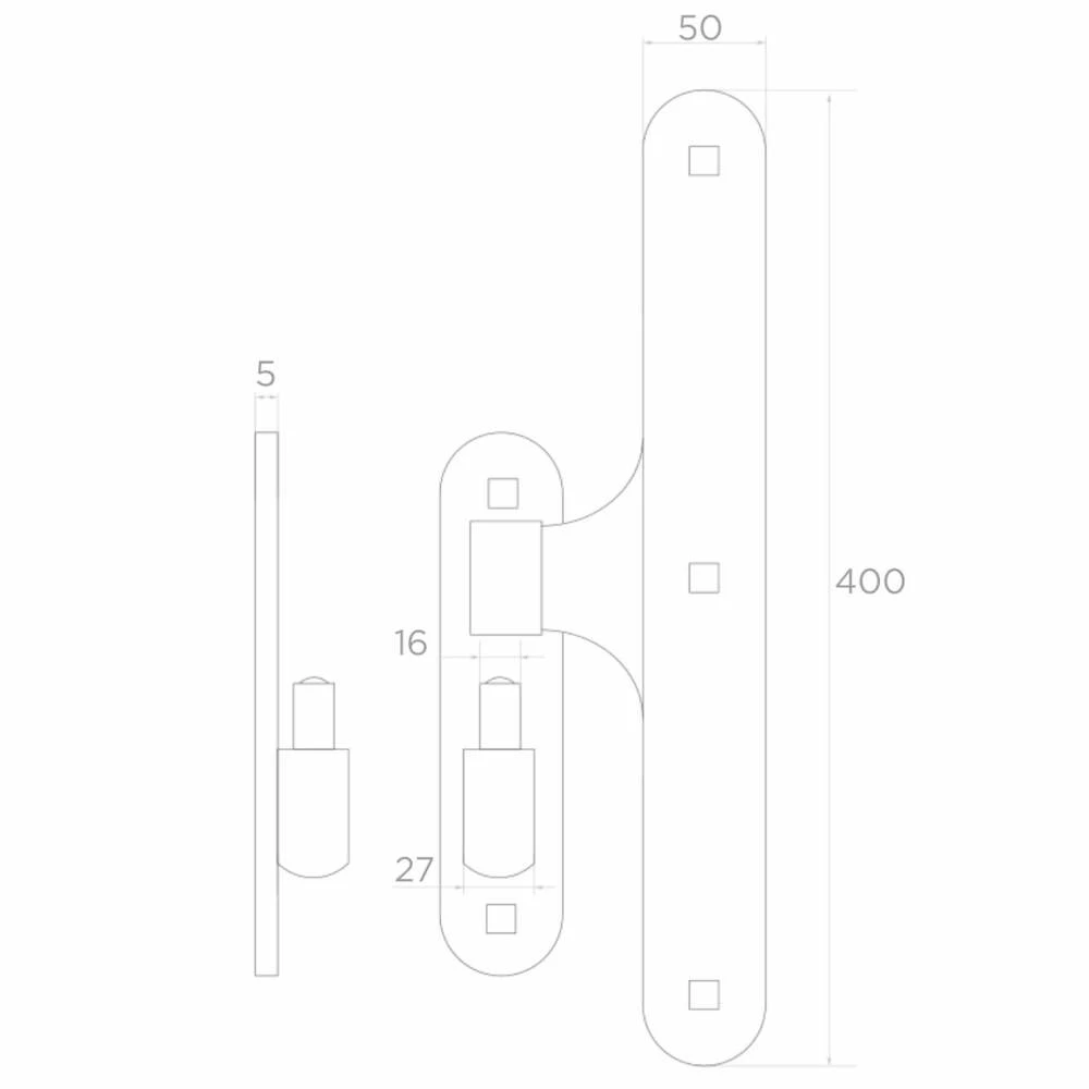 Das Mittelbandscharnier wird an der mittleren Aufhängung des Torflügels montiert und gewährleistet eine gleichmäßige Lastverteilung. Quadratische Montagelöcher ermöglichen die Verwendung von Schlossschrauben, die nicht über die Schildoberfläche hinausragen und eine unbefugte Demontage von der Außenseite verhindern. Dies ist eine praktische Lösung, die sowohl die Ästhetik als auch die Montagsicherheit erhöht.