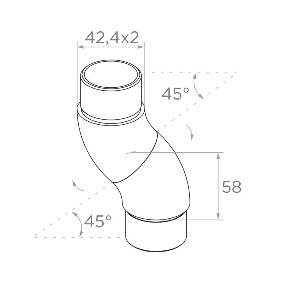 Drehbarer Geländerwinkel zum Einkleben für Rohr 42,4x2 mm – Edelstahl AISI 304 satiniert