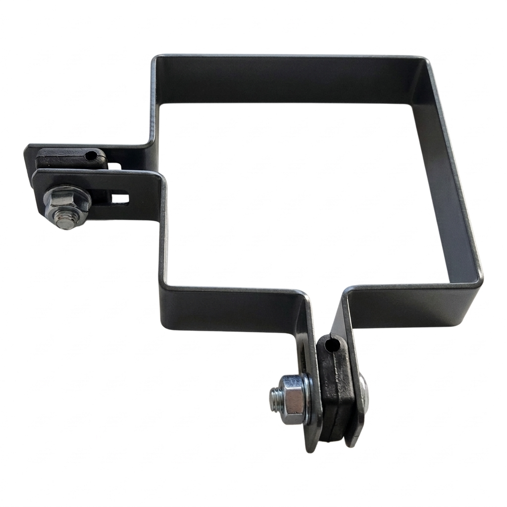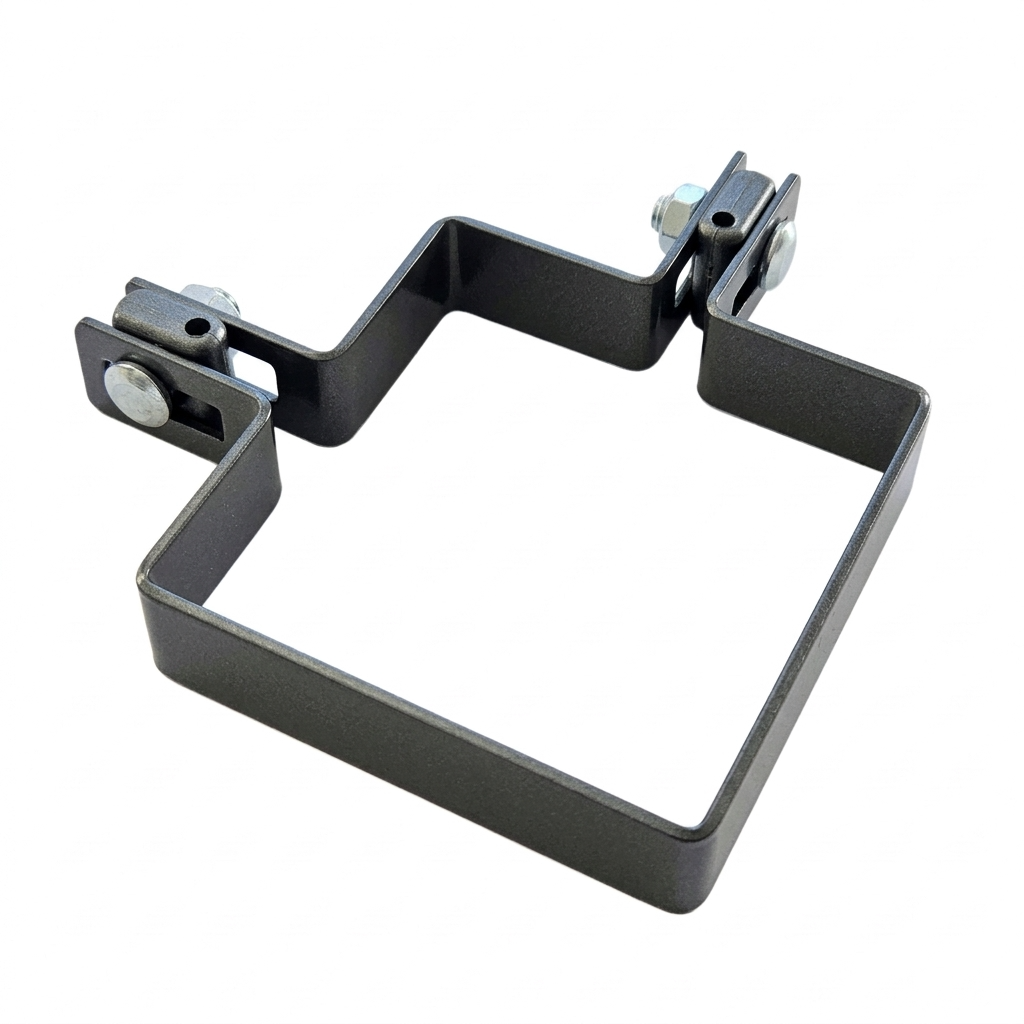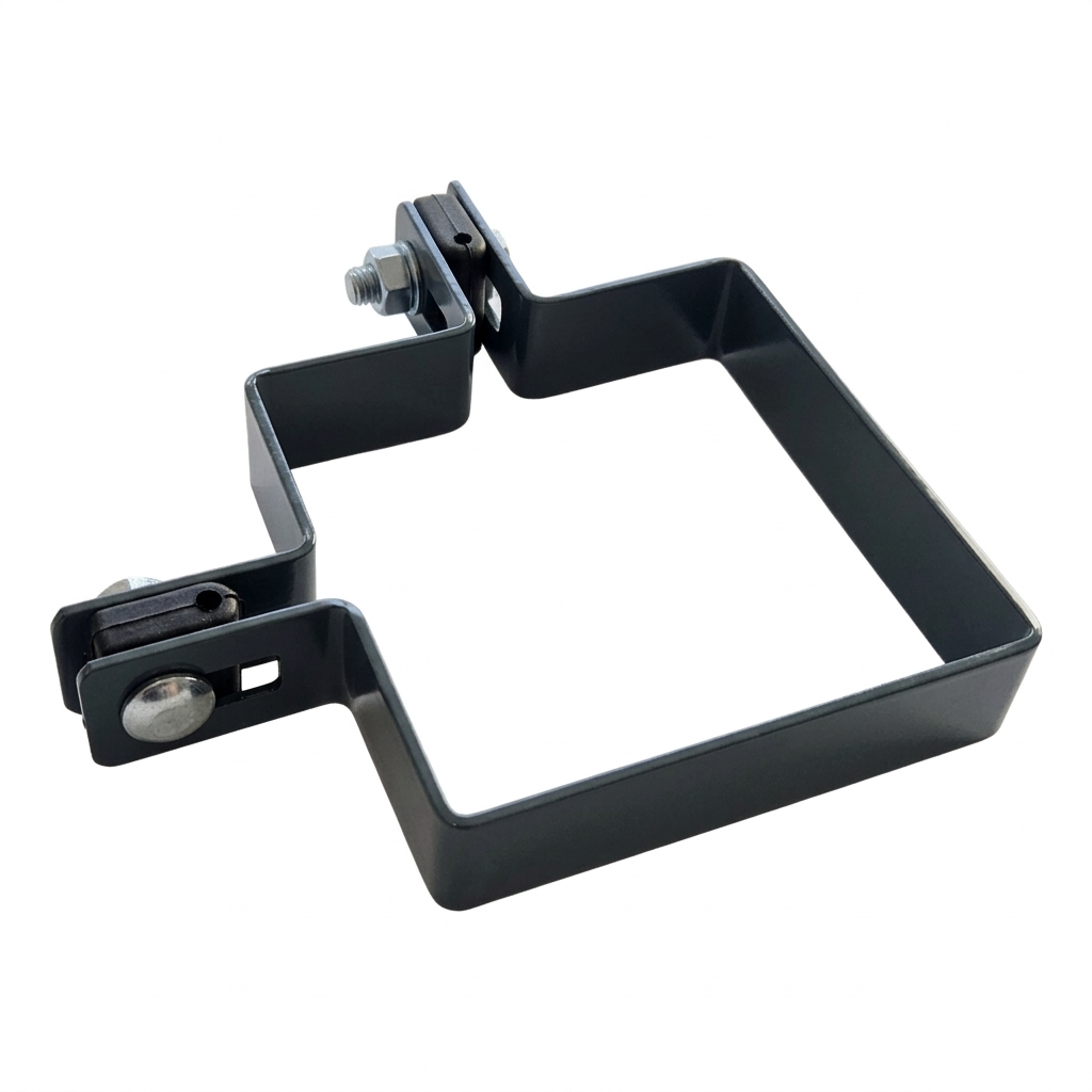 Die Schelle ist perfekt an den Pfosten-Querschnitt 100×100 mm angepasst, was eine stabile und sichere Verbindung der Zaunkonstruktion gewährleistet. Die bohnenförmigen Montagelöcher ermöglichen eine Positionsregulierung des Paneels relativ zum Pfosten – erleichtern die Ausrichtung des Zauns auch auf unebenem Gelände.