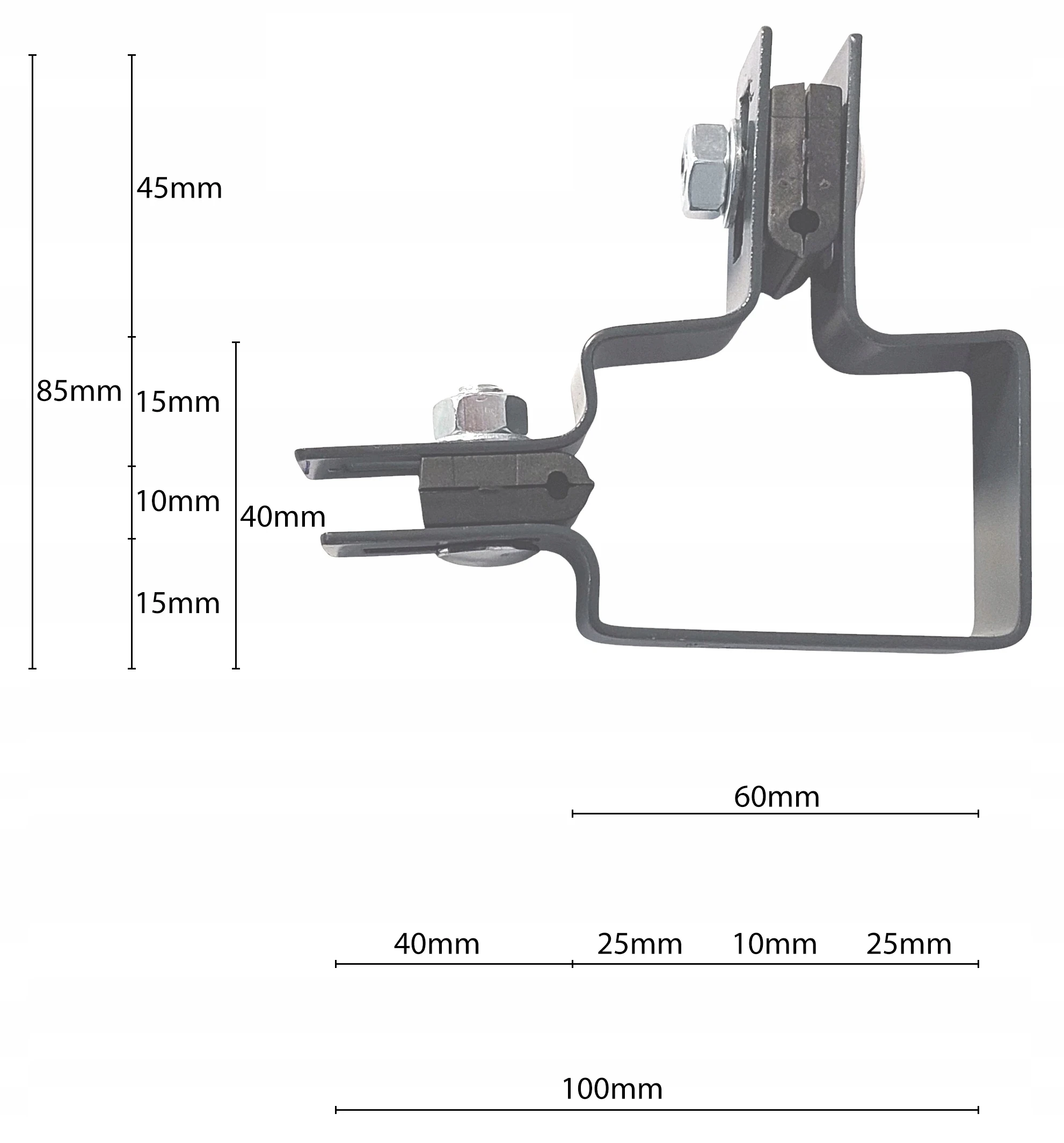Die Eckschelle für Zaunpaneele 40x60 ist ein solides Konstruktionselement, das für die Montage von Zaunpaneelen an Zaunecken bestimmt ist.