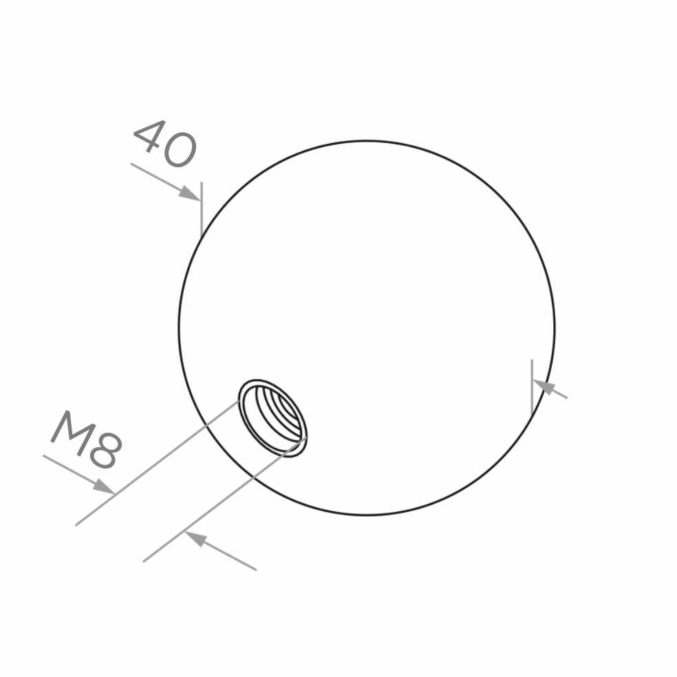 Einschraubbare Vollkugel für Geländer ø 40 mm Gewinde M8 – Edelstahl satiniert