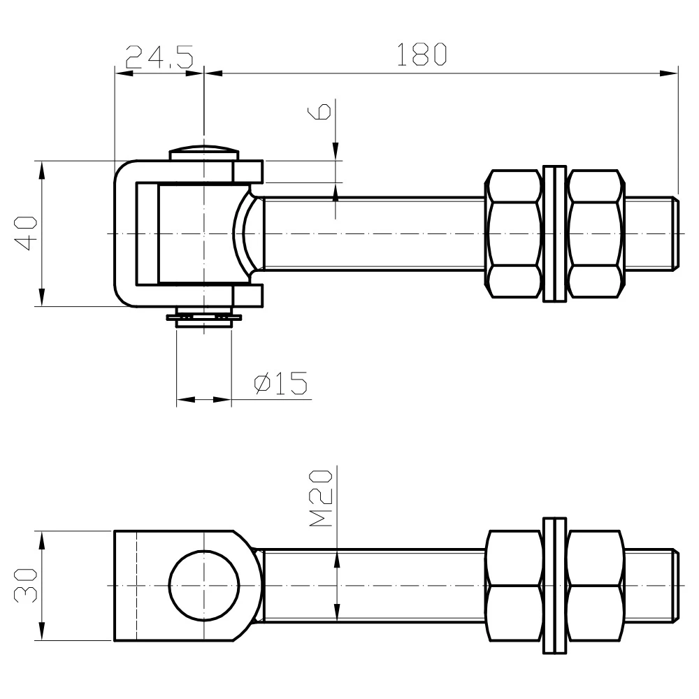 Einstellbares Torband M20 Stahl L180 mm – für Gartentore und Flügeltore