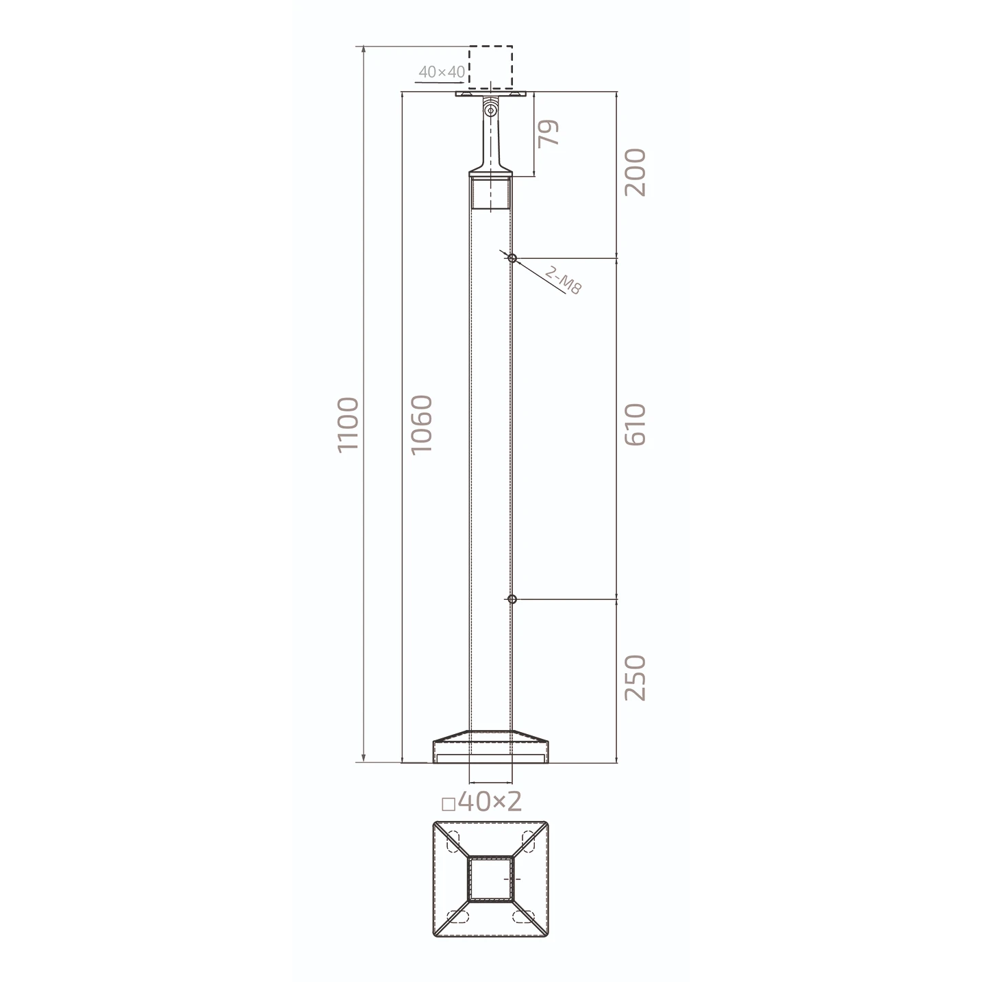 - Pfosten aus Edelstahl 40×40×1060 mm