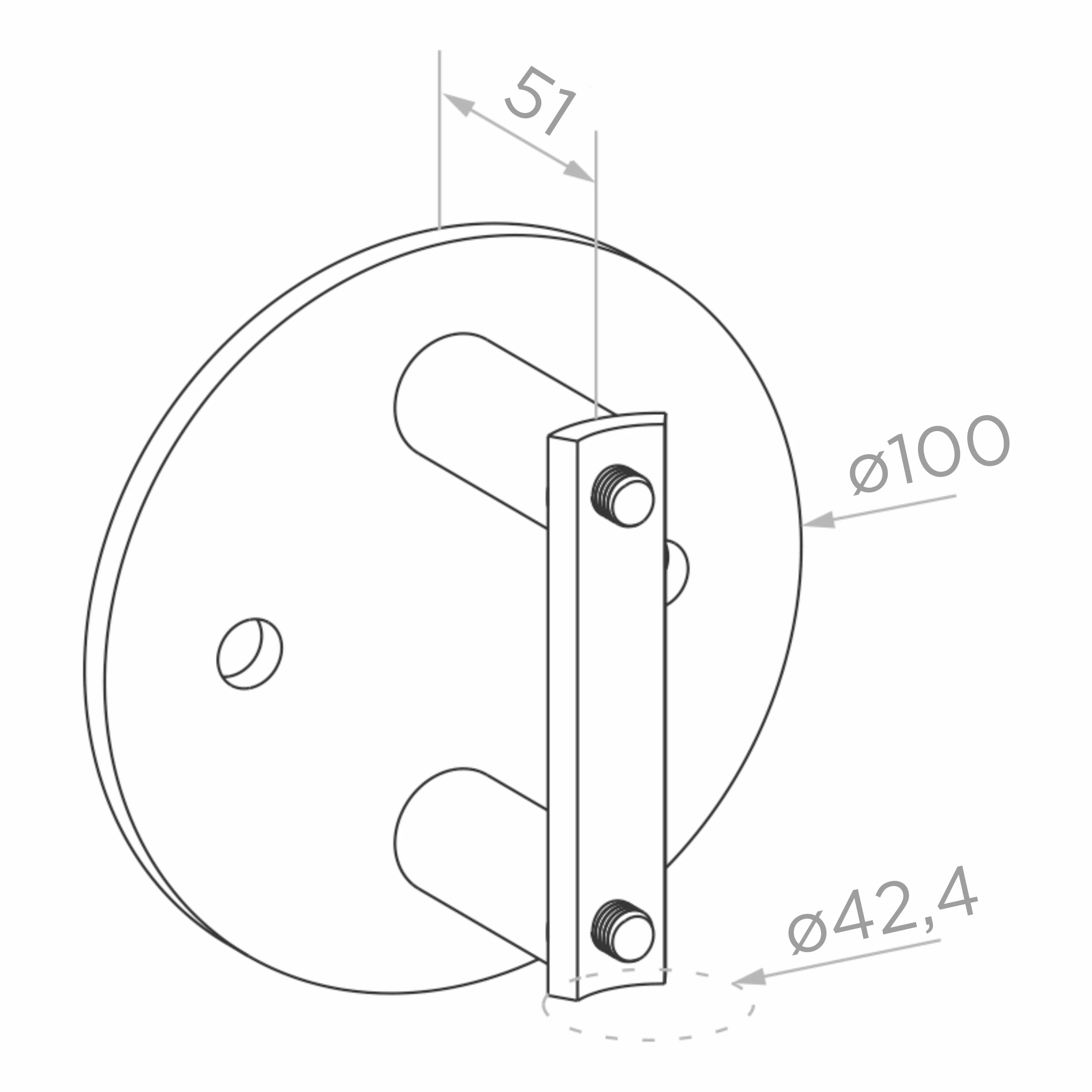 Die Montagerosette mit Durchmesser ø100 mm gewährleistet eine stabile und ästhetische Befestigung des Pfostens an der Wand. Der Montageabstand von 51 mm (von der Wandoberfläche zur Pfostenachse) garantiert den entsprechenden Abstand für die freie Führung der Glasscheiben. Die Montagelöcher in der Rosette ermöglichen eine sichere Verankerung an gemauerten, betonierten und anderen tragenden Konstruktionen.