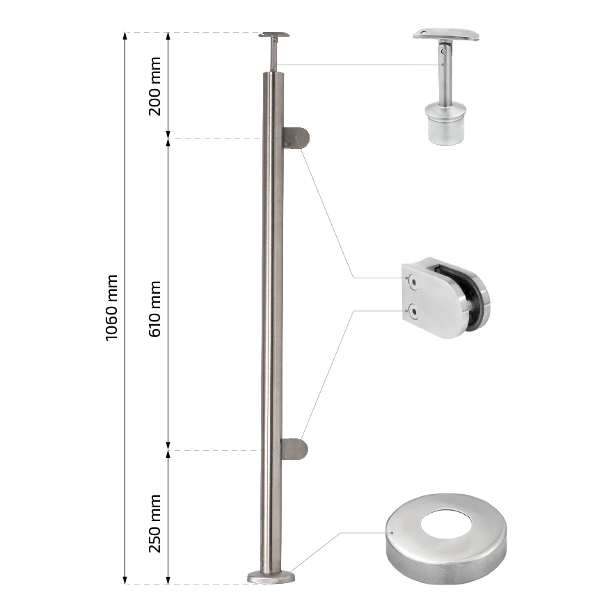 Endpfosten rechts/links Ø 42,4x1060mm AISI304 2 Glashalter bodenstehend