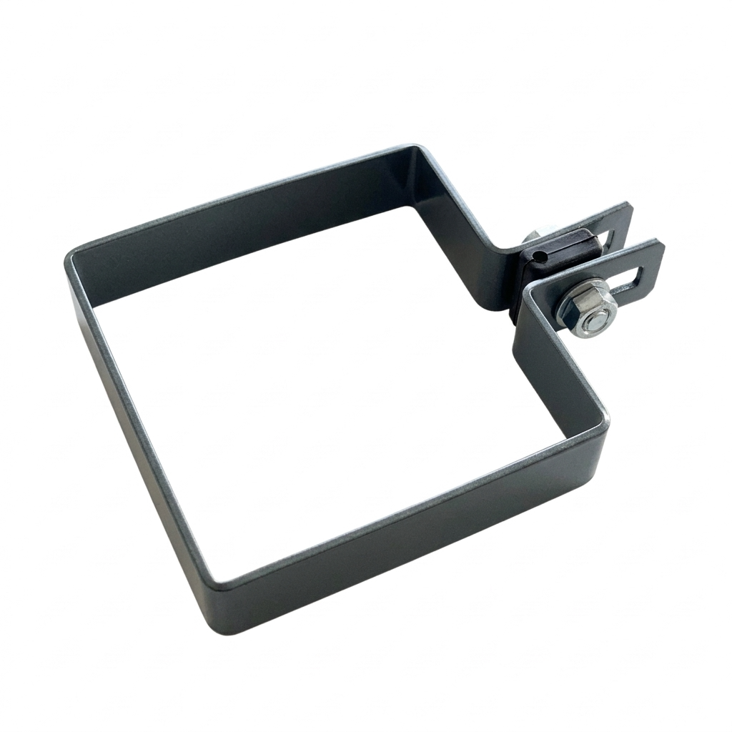 Endschelle für Zaunpaneele zur Befestigung von Gittern und Paneelen an Pfosten mit Querschnitt 100×100 mm. Das komplette Montageset ermöglicht eine schnelle und sichere Montage von Zäunen sowohl bei privaten als auch bei gewerblichen Projekten – ohne die Notwendigkeit der separaten Beschaffung von Schrauben und Distanzstücken.