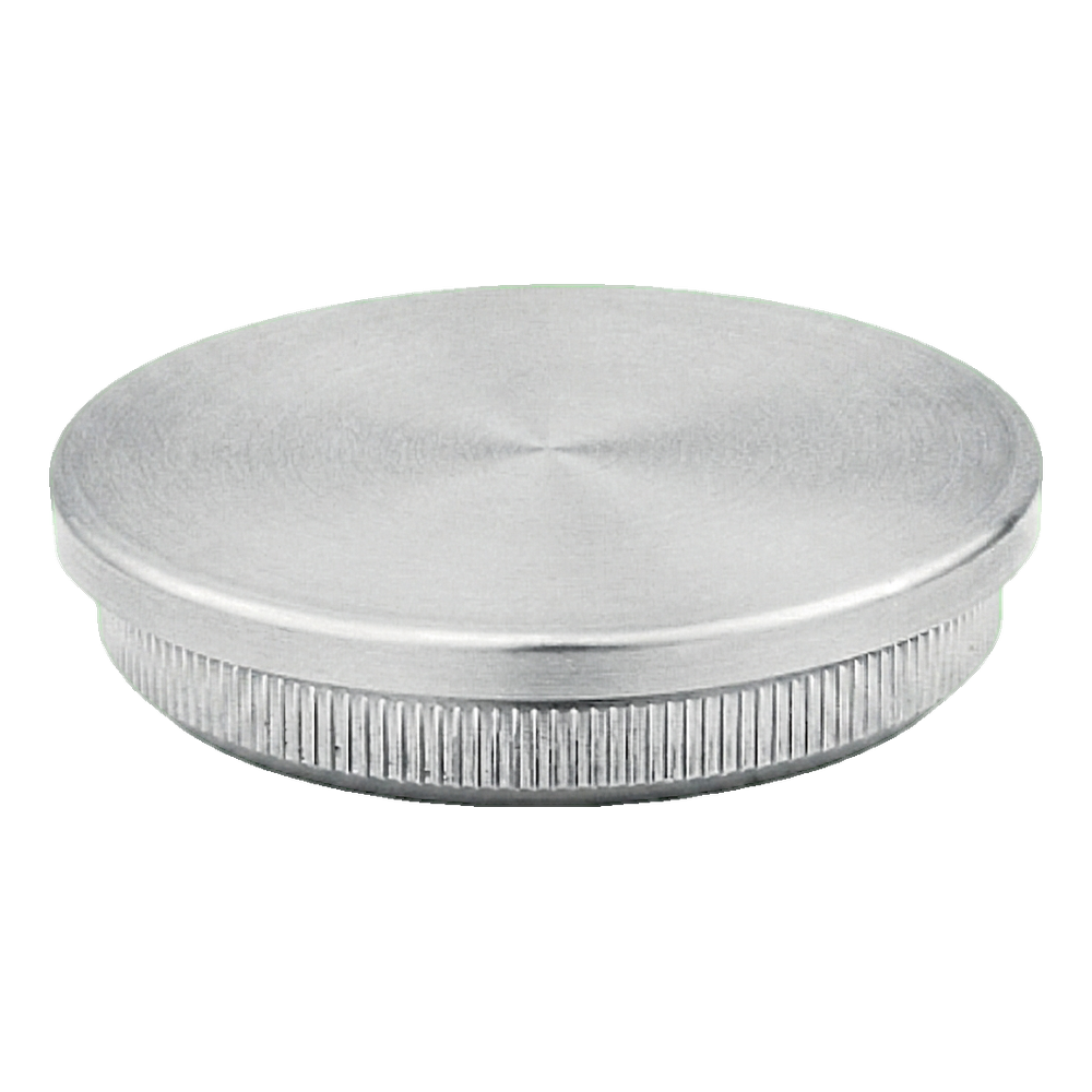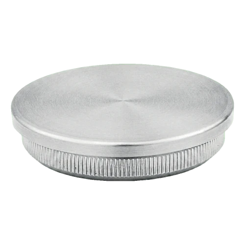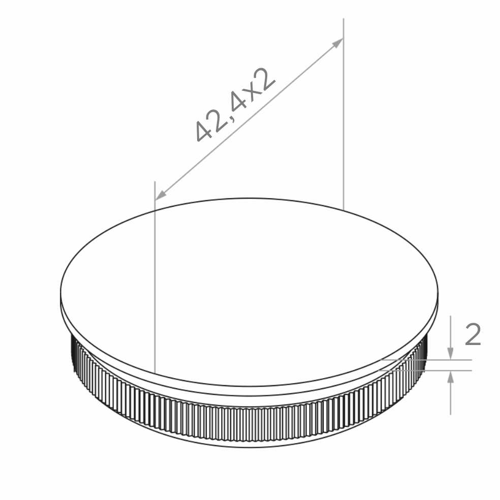 Flacher Einschlag-Endverschluss für Geländerrohre mit Außendurchmesser 42,4 mm und Wandstärke 2 mm. Ästhetisches Abschlusselement, das offene Rohrenden effektiv verschließt und das Profilinnere vor Niederschlag, Feuchtigkeit und Korrosionsentwicklung schützt. Dank der flachen Oberfläche sorgt er für ein elegantes, minimalistisches Erscheinungsbild des Geländers.