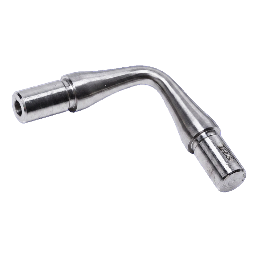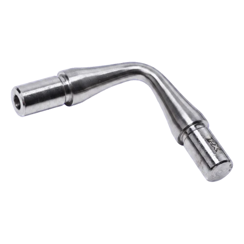 Das Winkelstück wird mittels Einkleben mit anaerobem Kleber montiert, der unter Metallkontakt bindet und nach Luftabschluss aushärtet. Dadurch ist die Verbindung von außen unsichtbar und das Ganze behält ein sauberes, einheitliches Aussehen ohne Schweißarbeiten.