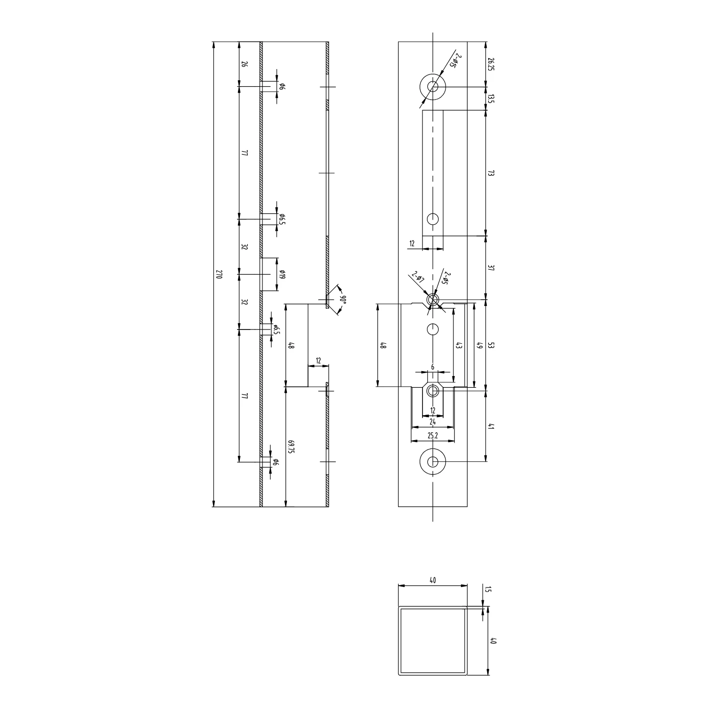 - Profilquerschnitt: 40 × 40 mm