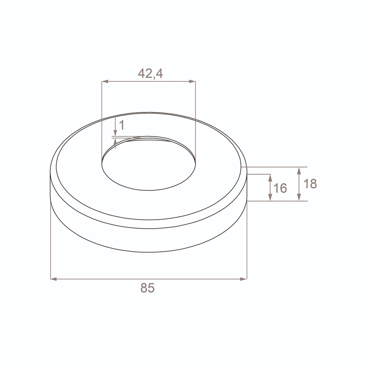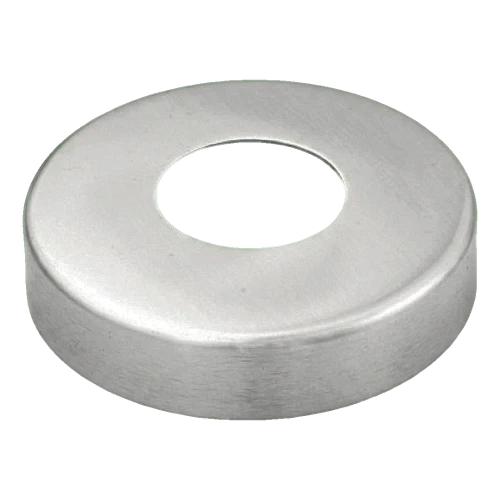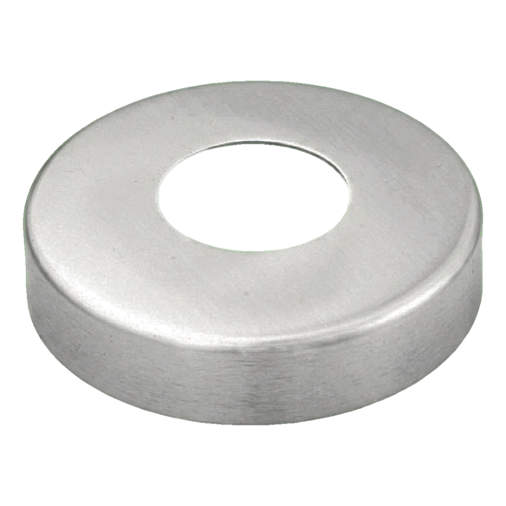 Runde Abdeckrosette aus Edelstahl AISI 304 in satinierter Ausführung — ästhetisches Abschlusselement zum Abdecken von Montagelöchern um Geländerrohre mit Durchmesser 42,4 mm. Durch präzise Anpassung und hochwertige Materialqualität verleiht die Abdeckung dem Geländer ein professionelles, sauberes Aussehen und eliminiert sichtbare Rohrdurchgänge durch Boden, Decke oder Podest.