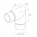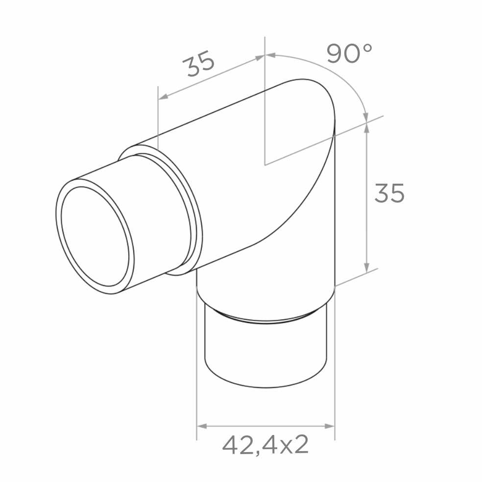 Der Winkel ist zur Verbindung von Rohrabschnitten in Edelstahlgeländersystemen überall dort bestimmt, wo eine Richtungsänderung des Handlaufs um 90° erforderlich ist — beispielsweise an Balkonecken, Treppenhäusern oder Terrassen. Die 35 mm langen Arme auf jeder Seite gewährleisten ausreichende Klebefläche für eine dauerhafte Verbindung. Das Element wird in das Rohr mit Durchmesser ⌀42,4×2 mm eingeklebt, was einen glatten, stufenlosen Übergang und ein professionelles Endergebnis garantiert.