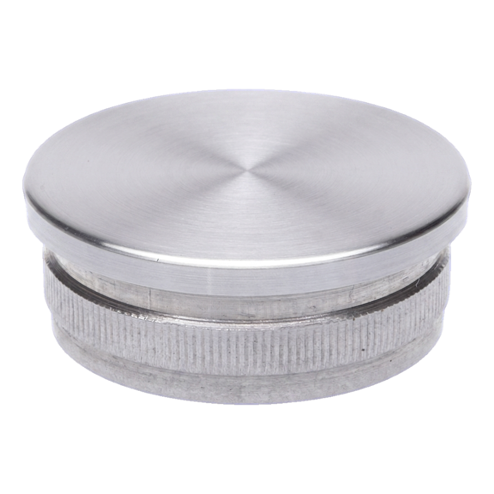 Die Kappe wird durch Einschlagen des gerändelten Einsatzteils in das Rohrinnere montiert. Die Rändelung gewährleistet eine dauerhafte und sichere Befestigung ohne Möglichkeit des zufälligen Herausfallens. Das Element ist für Geländersysteme basierend auf Rohren Ø 48,3 mm bestimmt — einem der am häufigsten verwendeten Standards bei Edelstahlgeländern. Eignet sich ideal als Abschluss für obere Handläufe, senkrechte Pfosten sowie andere konstruktive Elemente von Innen- und Außengeländern.