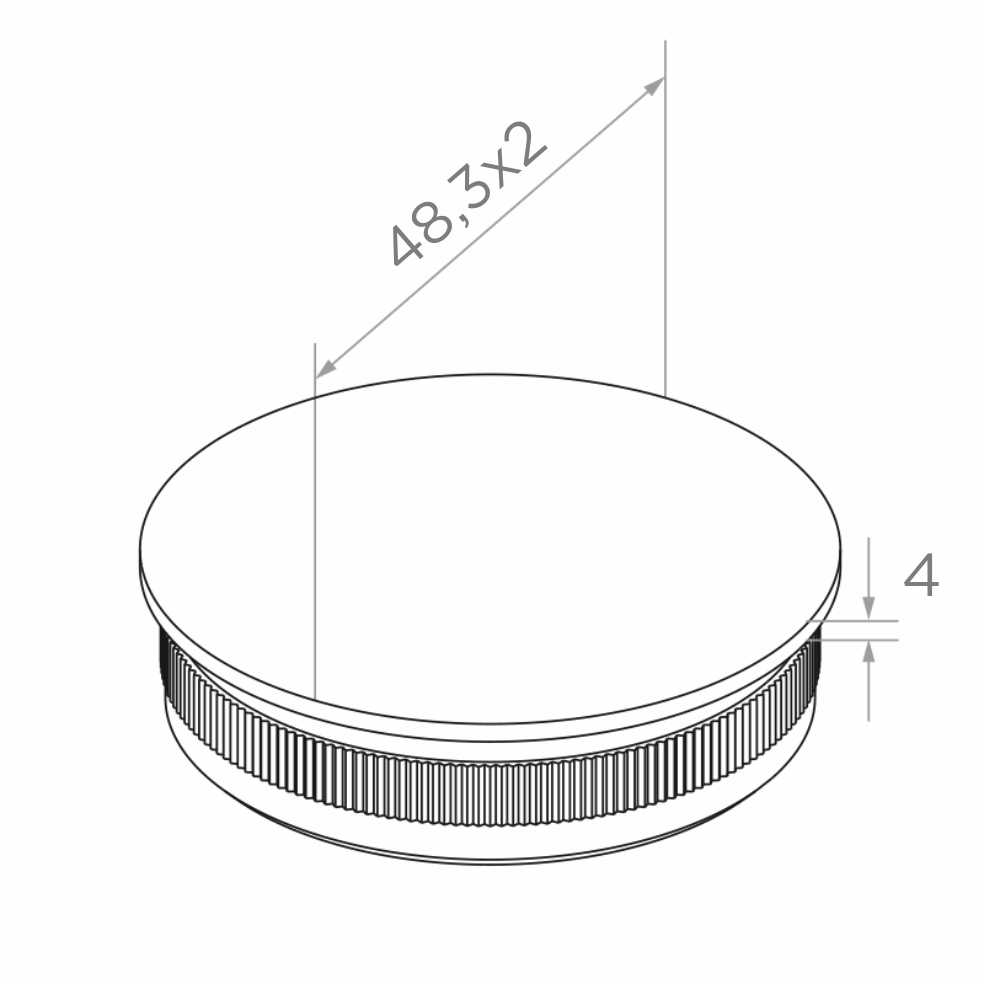 Konvexe Einschlagkappe für Rundrohre mit Durchmesser 48,3 × 2 mm — ästhetisches Abschlusselement zur Verschließung von Handlauf- und Geländerpfostenenden. Durch den gerändelten Einsatzteil erfolgt die Montage mittels Einschlagen — ohne zusätzliche Werkzeuge, Kleber oder Schweißen. Die Kappe gewährleistet einen sauberen, sicheren Rohrabschluss, eliminiert scharfe Kanten und schützt das Rohrinnere vor Verschmutzungen und Feuchtigkeit.