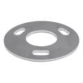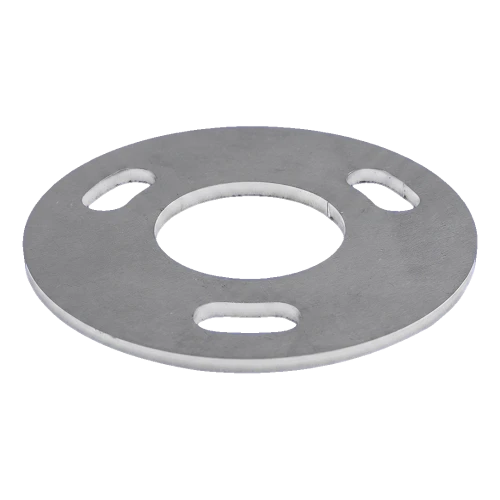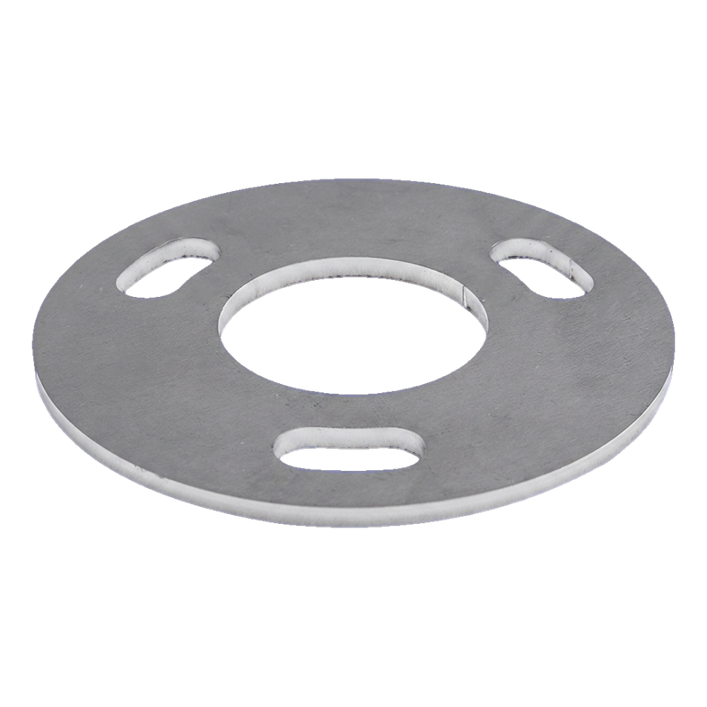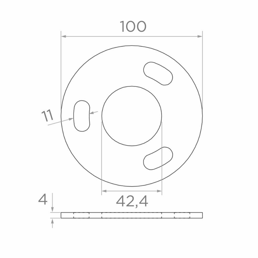 Runde Pfostengründplatte zum Schweißen für die Montage von Geländerpfosten mit 42,4 mm Durchmesser. Solides Konstruktionselement für Stabilität und Festigkeit der gesamten Edelstahl-Geländerkonstruktion. Durch drei ovale Montagelöcher (Langlöcher) ermöglicht die Grundplatte eine präzise Justierung der Ankerbolzen, was die Montage auf unebenen Untergründen erheblich erleichtert.