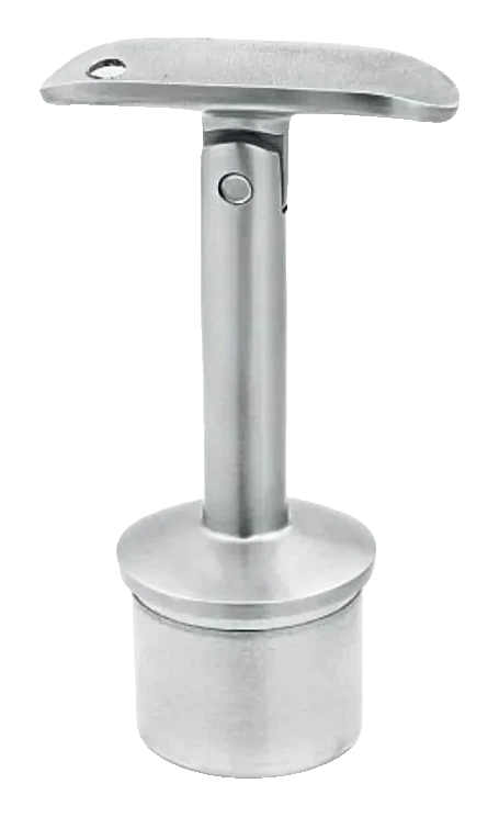 Gelenkiger Handlaufhalter für das Geländersystem 42,4 mm, zur Verklebung in den Pfosten mittels Anaerobbkleber vorgesehen. Dank der Gelenkkonstruktion ermöglicht er eine stufenlose Winkeleinstellung des Handlaufs, was die Montage von Treppengittern erheblich erleichtert und das individuelle Zuschneiden von Elementen unter einem bestimmten Winkel überflüssig macht.