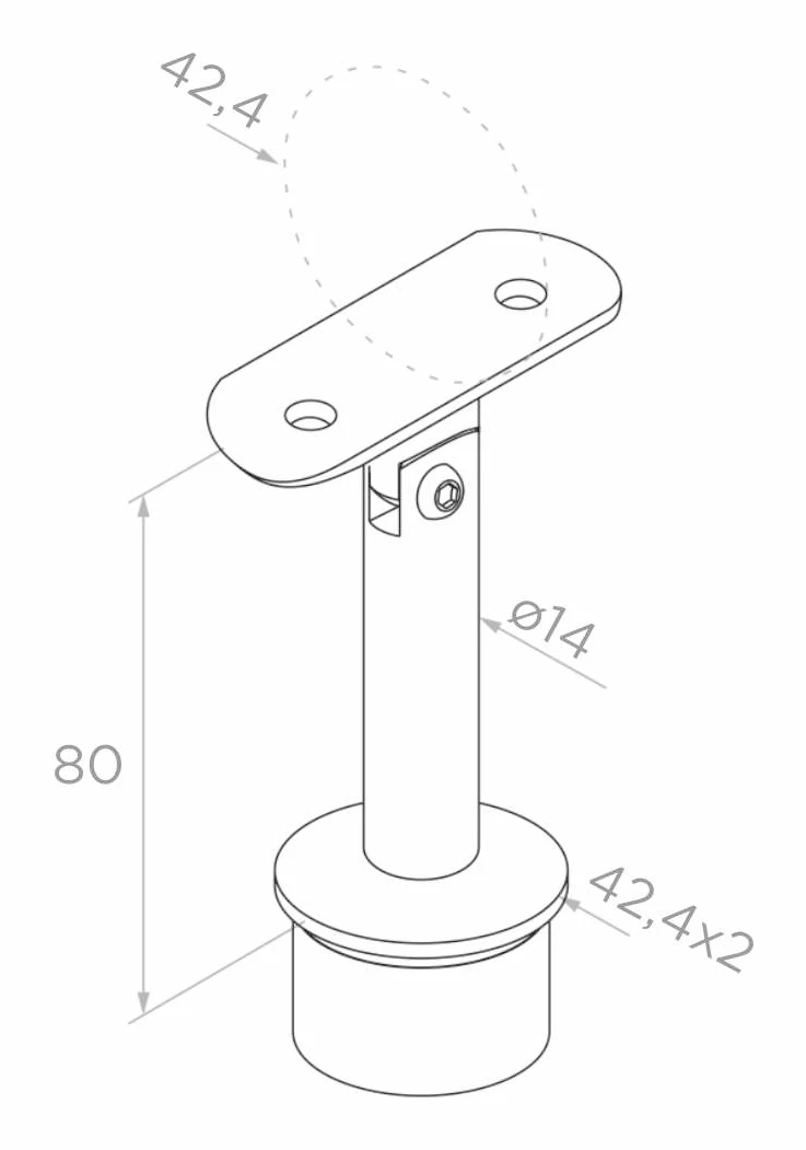 Gelenk-Handlaufstütze geklebt fi 42,4 mm, Zapfen fi 14 mm, H80, AISI 304, Satin, System 42,4 mm (24 Stk.)