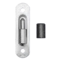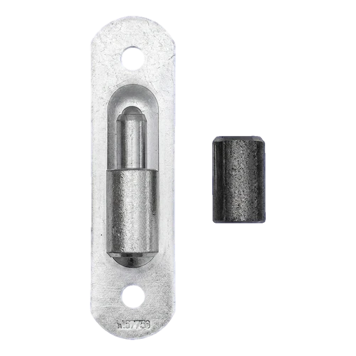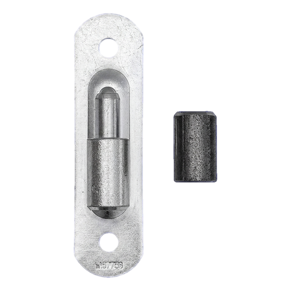 Im Set enthalten ist ein Stahlschild mit Kugelzapfen sowie eine Hülse (Pfanne), die das Gegenelement des Scharniers darstellt. Durch die präzise Bearbeitung der Elemente arbeitet das Scharnier leise und gleichmäßig, was besonders bei häufig geöffneten Einfahrtstoren und Grundstückspforten von Bedeutung ist.