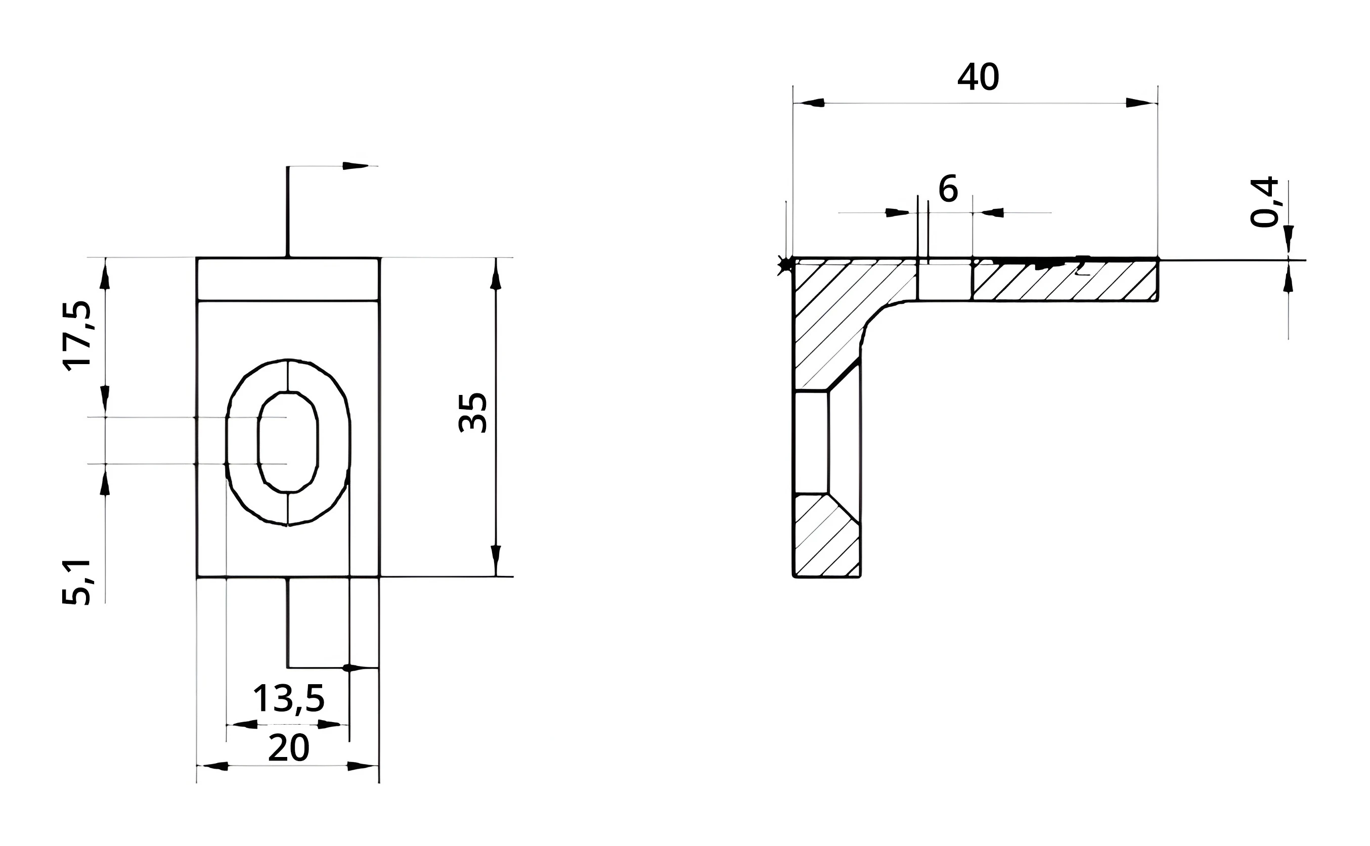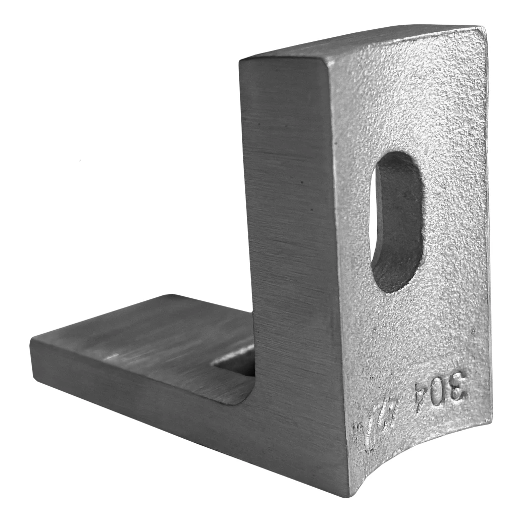 Das L-förmige Halterprofil ermöglicht eine stabile Einbettung der Glasscheibe, und die Gummieinlage (EPDM) am oberen Arm schützt die Glasoberfläche vor Kratzern und gewährleistet eine gleichmäßige Druckverteilung. Die Montage erfolgt über ein Langloch im vertikalen Teil, was eine Positionsanpassung während der Installation ermöglicht. Das Glas wird mit einer Befestigungsschraube mit M6 / M8 Gewinde (Schraube nicht im Lieferumfang enthalten) fixiert, die durch die Bohrung im oberen Arm eingeschraubt wird.