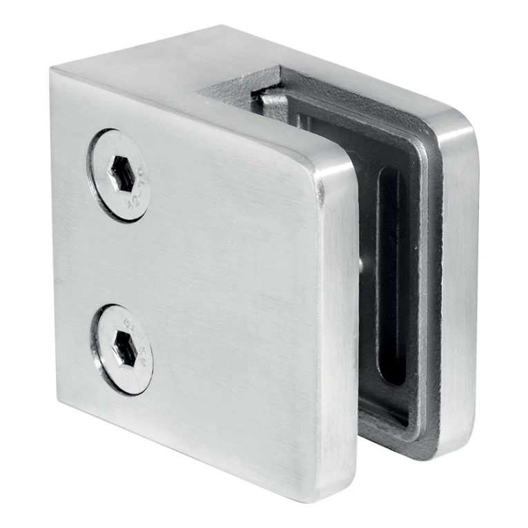 Glashalter 45x45x26 mm, Glas 6-10,76 mm, AISI 316, Flachsystem, Satin
