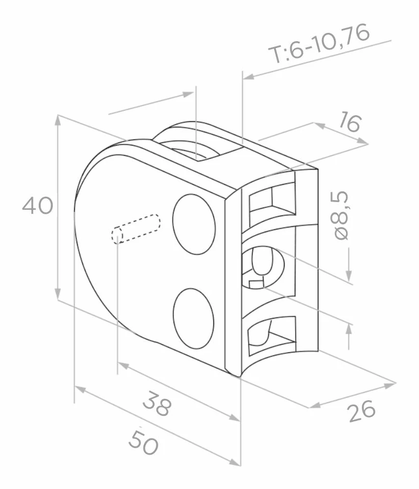 Glashalter 6-10,76 mm 50x40x26 mm Pin AISI 316 System 42,4 mm Satine