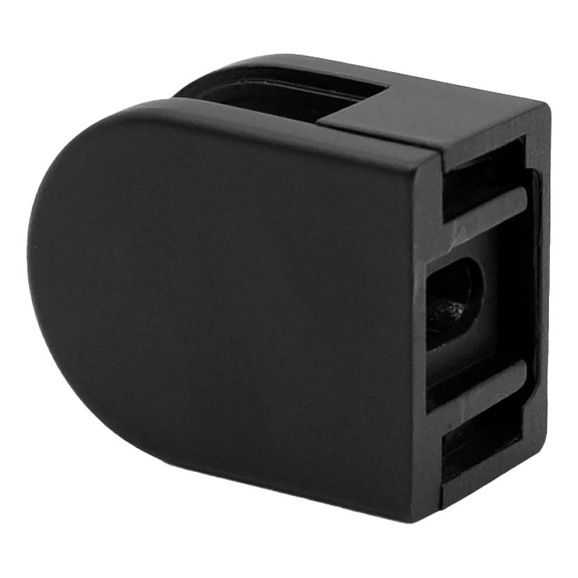 Glashalter in mattschwarzem Farbton für die Montage auf ebenen Flächen. Gefertigt aus Zamak und mit Spritzlackierung versehen, bietet er eine hohe Korrosionsbeständigkeit sowie eine ästhetische, moderne Optik. Ein ideales Element für Glasgeländer – sowohl im Innen- als auch im Außenbereich.