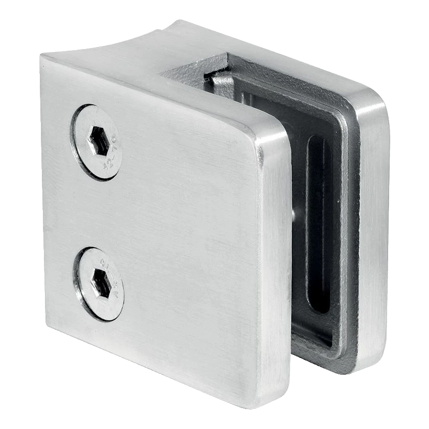 Rechteckiger Glashalter 45×45×26 mm aus Edelstahl AISI 304 in polierter Ausführung (Spiegelglanz). Das Produkt ist für die Befestigung von Glasscheiben mit einer Stärke von 6 bis 10,76 mm an Rohrpfosten mit einem Durchmesser von O42,4 mm vorgesehen. Die solide Konstruktion und die hochwertige Oberfläche machen den Halter zur idealen Lösung für Glasgeländer, Trennwände sowie Innen- und Außenverglasungen.