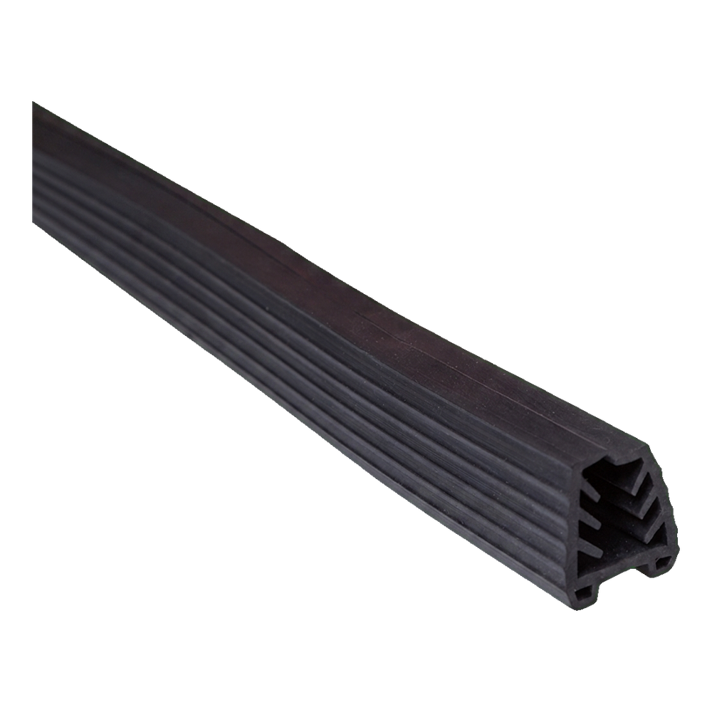 Andruckgummi für Glashandlauf für Glasgeländer. Die Dichtung dient zur sicheren Fixierung und zum Schutz von Glasscheiben mit einer Dicke von 11,5–13,5 mm im Inneren des Geländerhandlaufs. Dank des speziell entwickelten Profils mit Innenkanälen sorgt sie für gleichmäßigen Anpressdruck über die gesamte Länge und eliminiert Vibrationen und Spiel der Glasscheibe.