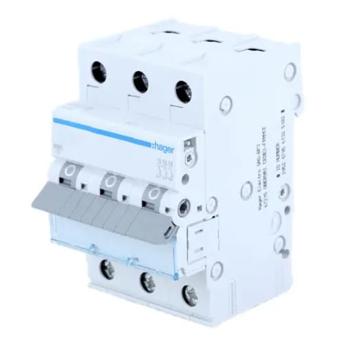 Leitungsschutzschalter MCB C 25A 3P 6kA MCN325E von HAGER, auch als Installationsschutzschalter bekannt, dient zum Schutz von Kabeln und Leitungen vor den Folgen von Kurzschlüssen und Überlastungen.