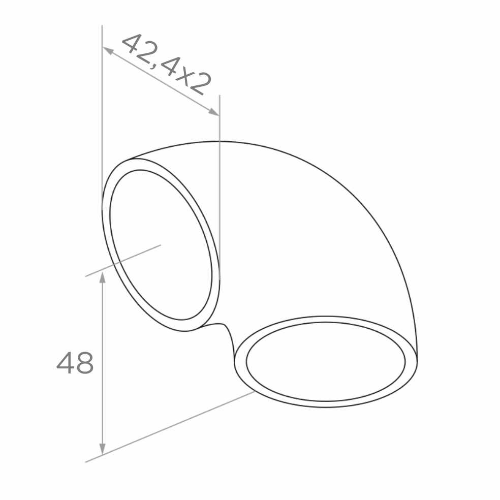 Hamburger Bogen 90° ist ein präzises Geländerverbindungselement zum Einschweißen, entwickelt für das Rohrsystem ø 42,4 mm. Durch die Ausführung aus Edelstahl AISI 304 mit satinierter Oberfläche gewährleistet der Bogen eine dauerhafte, ästhetische und korrosionsbeständige Geländerkonstruktion – sowohl in Innenräumen als auch im Außenbereich.