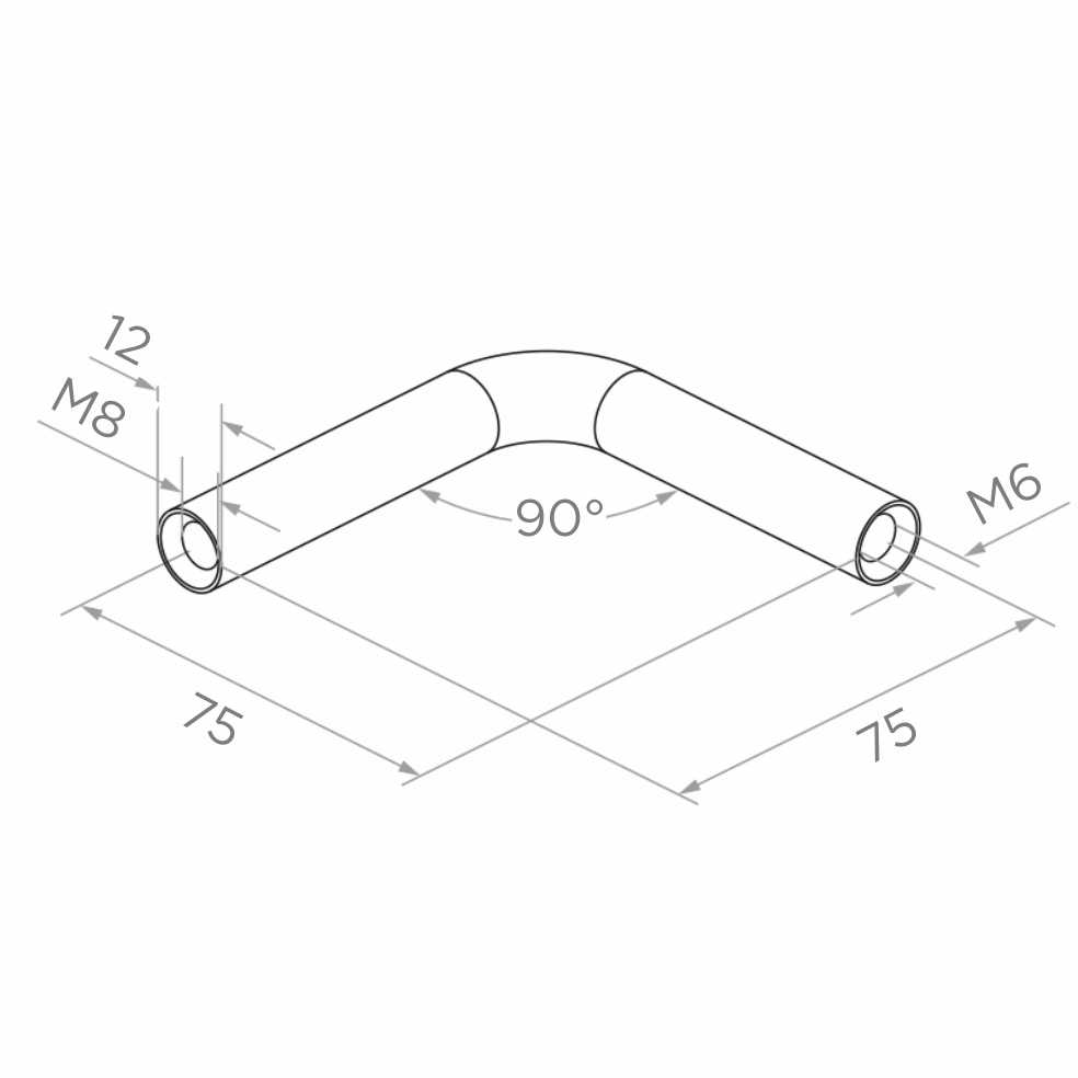 Handlaufstützstab 90° ø 12 mm 75×75 mm – Edelstahl AISI 304 satiniert