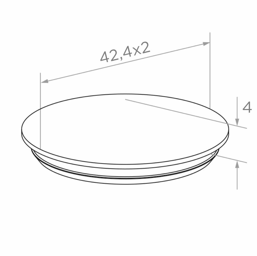 Der konvexe Endstopfen zum Einschlagen ist ein elegantes und langlebiges Abschlusselement für Handlaufrohre mit einem Durchmesser von Ø42,4 mm und einer Wandstärke von 2 mm. Durch die Montage per Einschlagen ins Rohrinnere ist die Installation schnell und erfordert keine zusätzlichen Werkzeuge – ein Gummihammer genügt. Der Endstopfen schützt Rohröffnungen effektiv vor Niederschlägen, Feuchtigkeit und Verunreinigungen, verhindert Korrosion von innen und verlängert die Lebensdauer der gesamten Geländerkonstruktion.