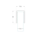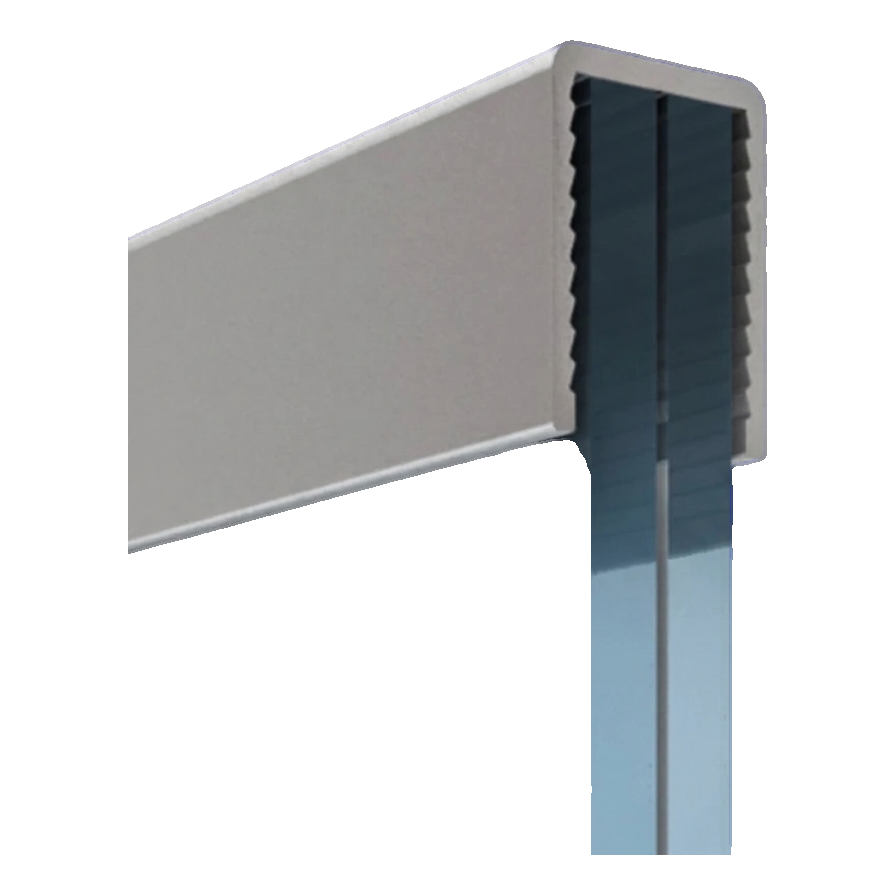 Rechteckiger Aluminium-Handlauf Kozza ist ein professionelles Abschlusselement für Geländer und Vollglasabtrennungen, bestimmt für die Montage an Glas mit einer Dicke von 12–13,52 mm. Das U-förmige Profil wird auf die obere Kante der Glasscheibe aufgeschoben und direkt mit Kleber oder Silikon befestigt — ohne Bohren, ohne Dichtungen und ohne Risiko einer Glasbeschädigung. Dadurch ist die Installation schnell, sauber und erfordert keine Spezialwerkzeuge.