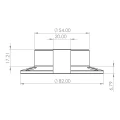 - Außendurchmesser Grundplatte (Flansch): 82 mm