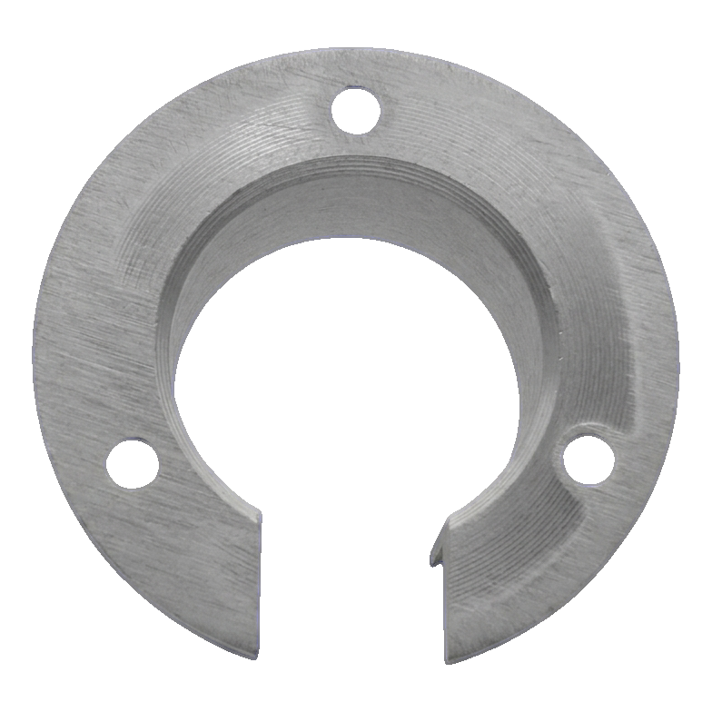Dank kompakter Abmessungen und einem Gewicht von nur 0,04 kg belastet das Element die Konstruktion nicht und gewährleistet gleichzeitig eine stabile Axialbefestigung. Drei Montagelöcher mit Senkungen für Schraubköpfe ermöglichen eine sichere und gleichmäßige Befestigung am Untergrund.