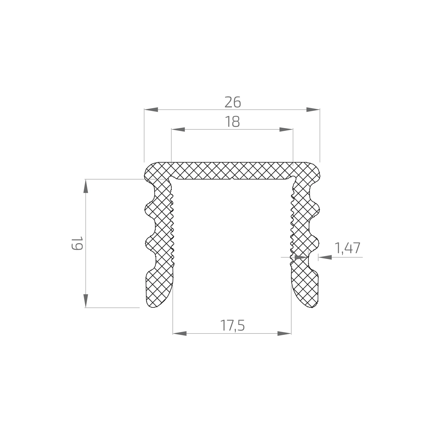 - Innenbreite des Kanals (oben): 18 mm