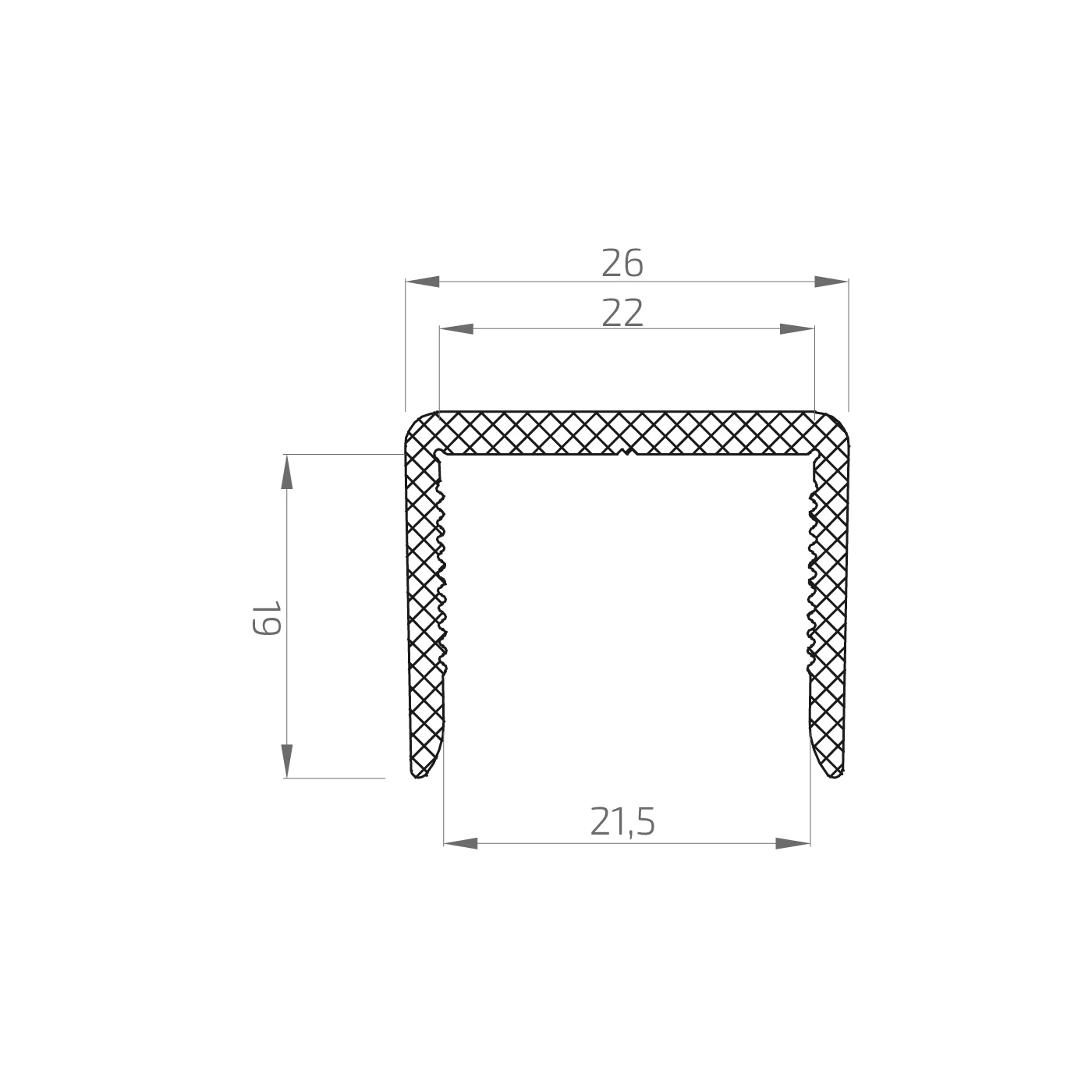 Die Kozza Dichtung für Aluminium-Handlauf ist ein unverzichtbares Element für die Montage von Ganzglasgeländern und gewährleistet eine stabile und sichere Befestigung von Glas mit einer Stärke von 20–21,52 mm im Handlaufprofil. Dank des elastischen U-förmigen Profils umschließt die Dichtung sicher die Glaskante und schützt sie vor Vibrationen, Verschiebungen sowie direktem Kontakt mit Aluminium.