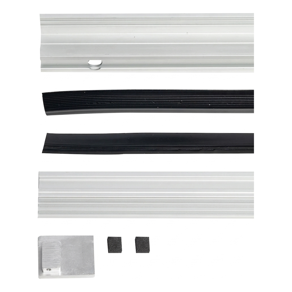 - 2 Seitenprofile aus Aluminium (präzise maßgeschnitten, mit werkseitig vorgefertigten Montagelöchern)