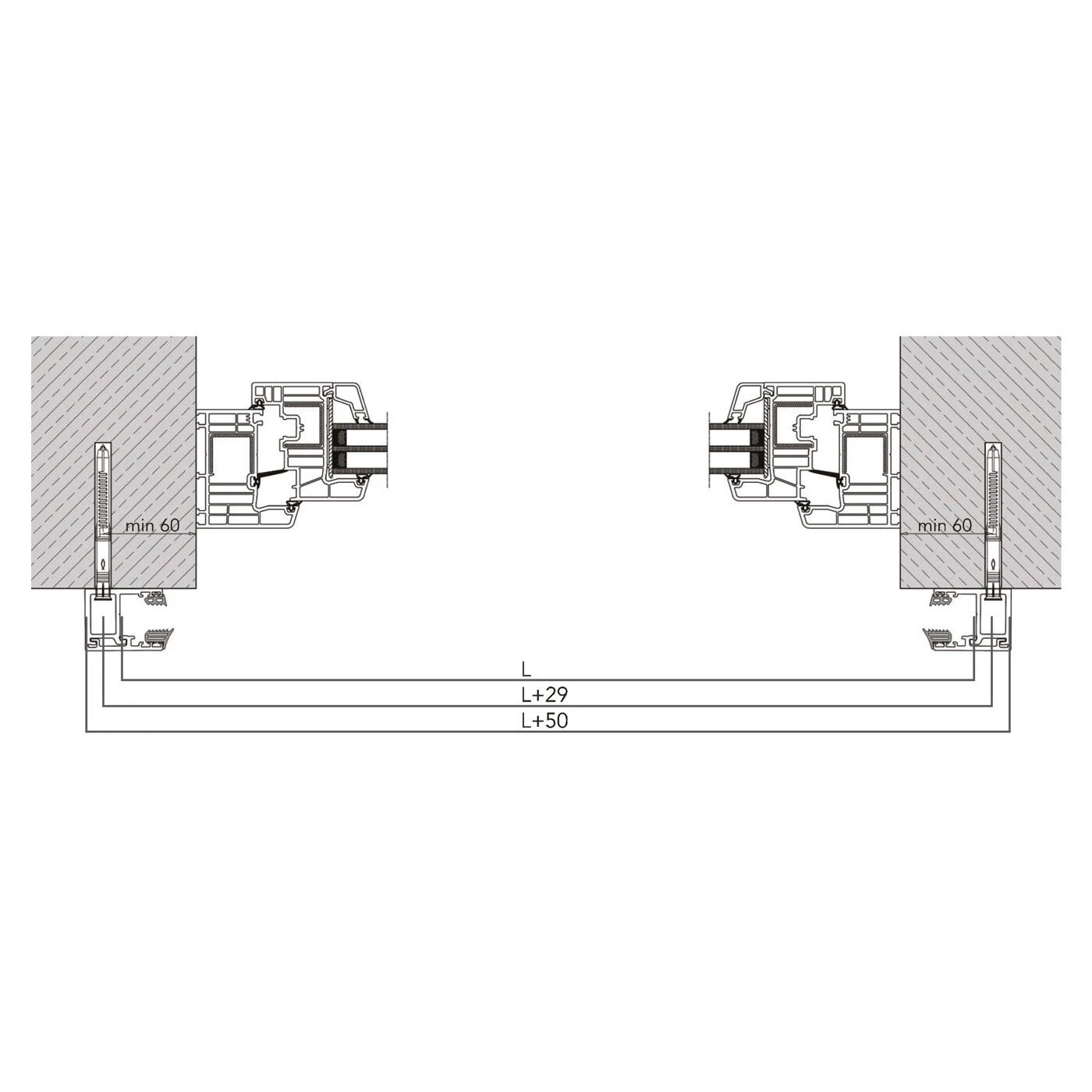 - L + 50 mm — gesamte Außenbreite des Systems (zwischen den Außenkanten der Profile)